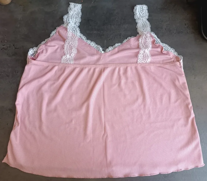 - Sleeveless camisole with delicate spaghetti straps and elegant lace trim