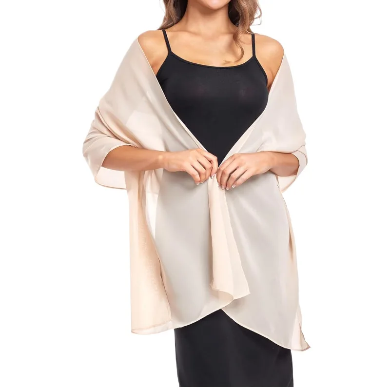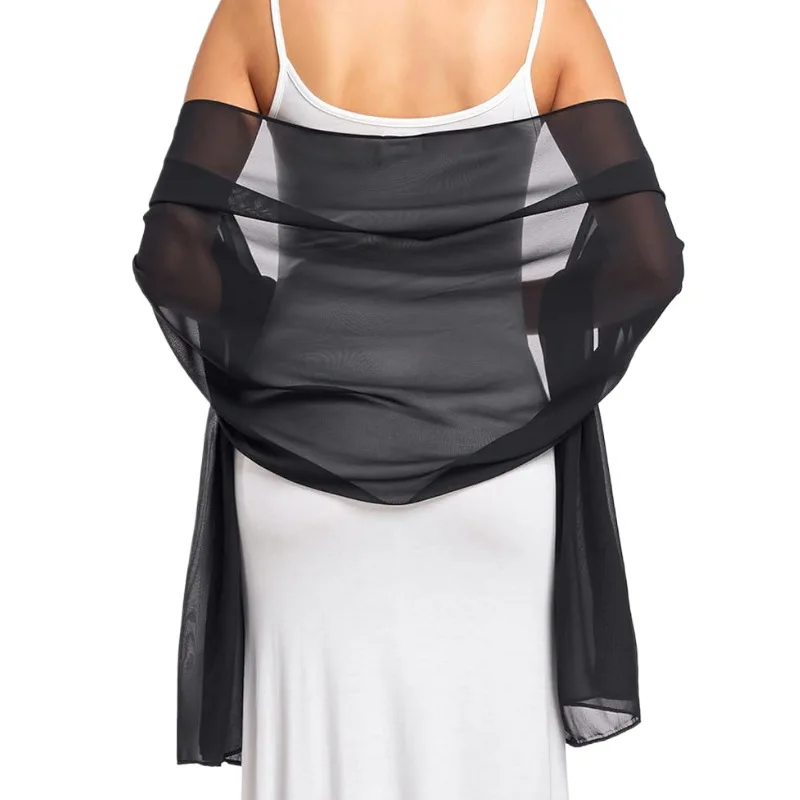 This lightweight chiffon shawl offers a refined accessory option for women seeking subtle elegance during warmer months. Crafted from polyester with a tatting weave, the shawl provides a smooth, soft texture and gentle drape, making it suitable for layering over a variety of outfits.