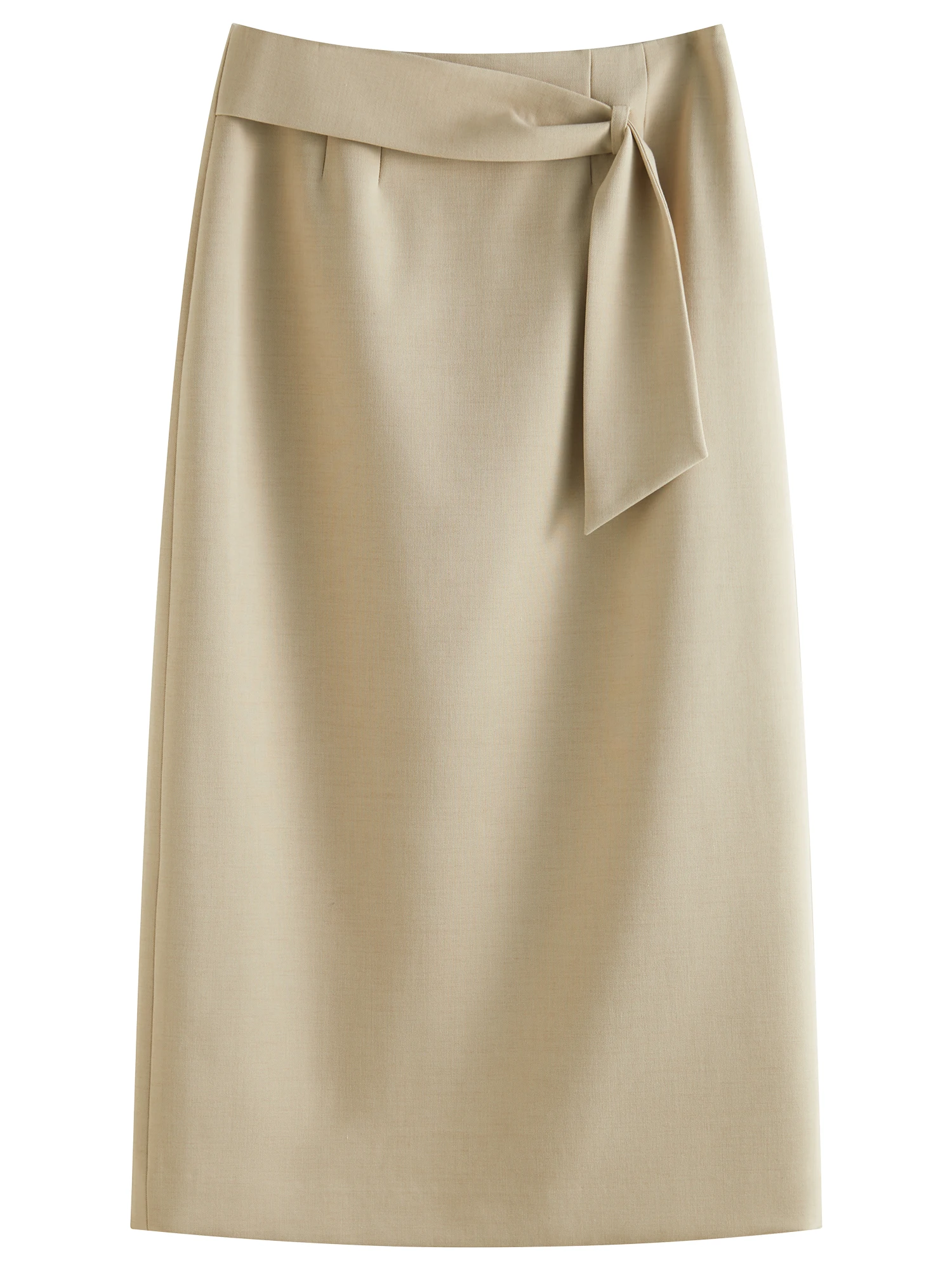 Designed for the modern woman seeking understated elegance, this long A-line midi skirt offers a refined silhouette enhanced by a delicate sash detail. Crafted from a blend of polyester, viscose, and spandex, it provides a subtle stretch for comfortable wear throughout your day.