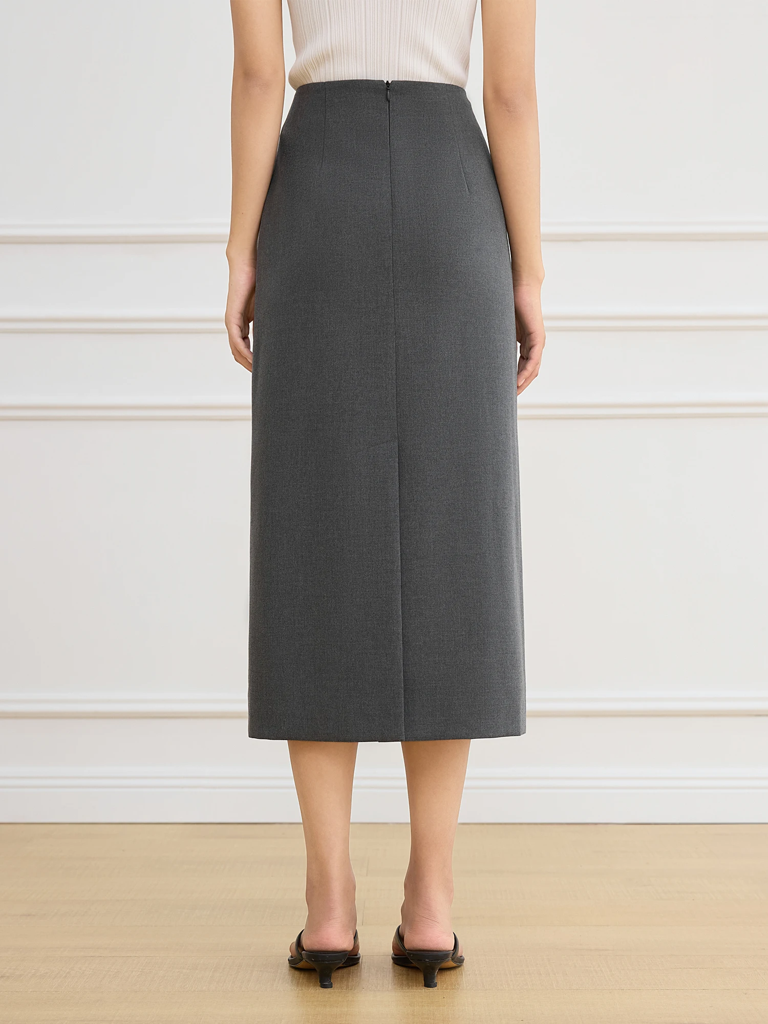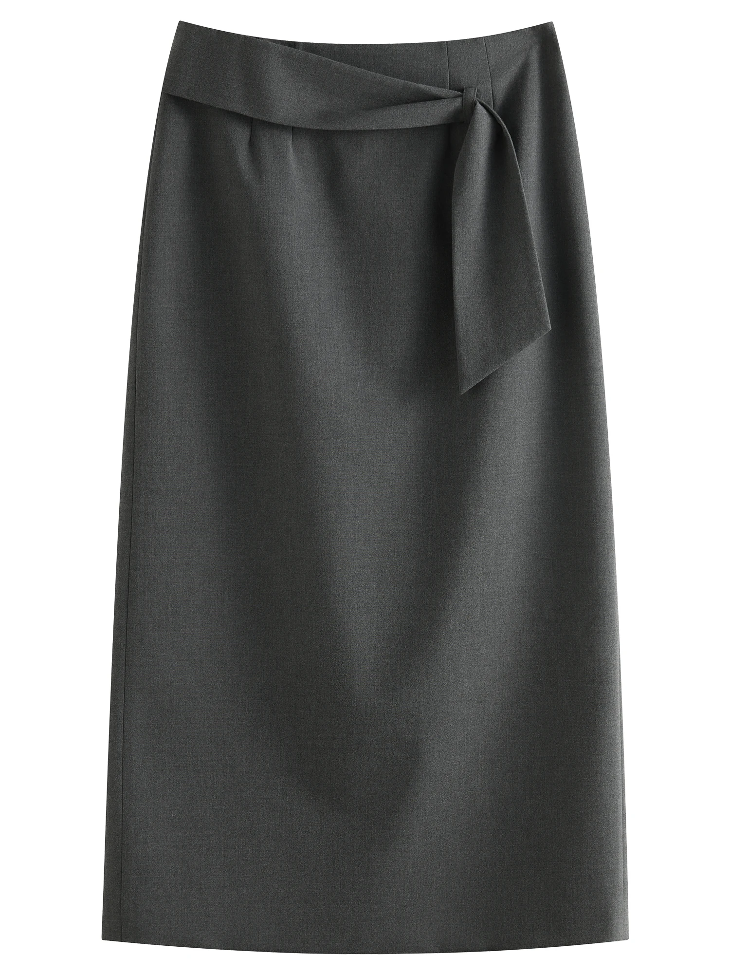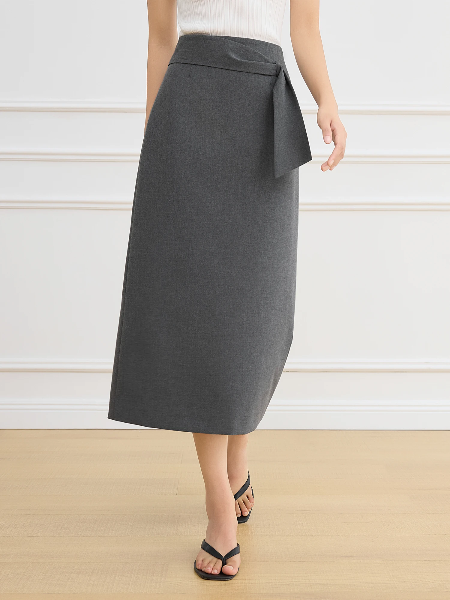 Women’s Long A-Line Midi Skirt with Sash Detail in Grey and Khaki