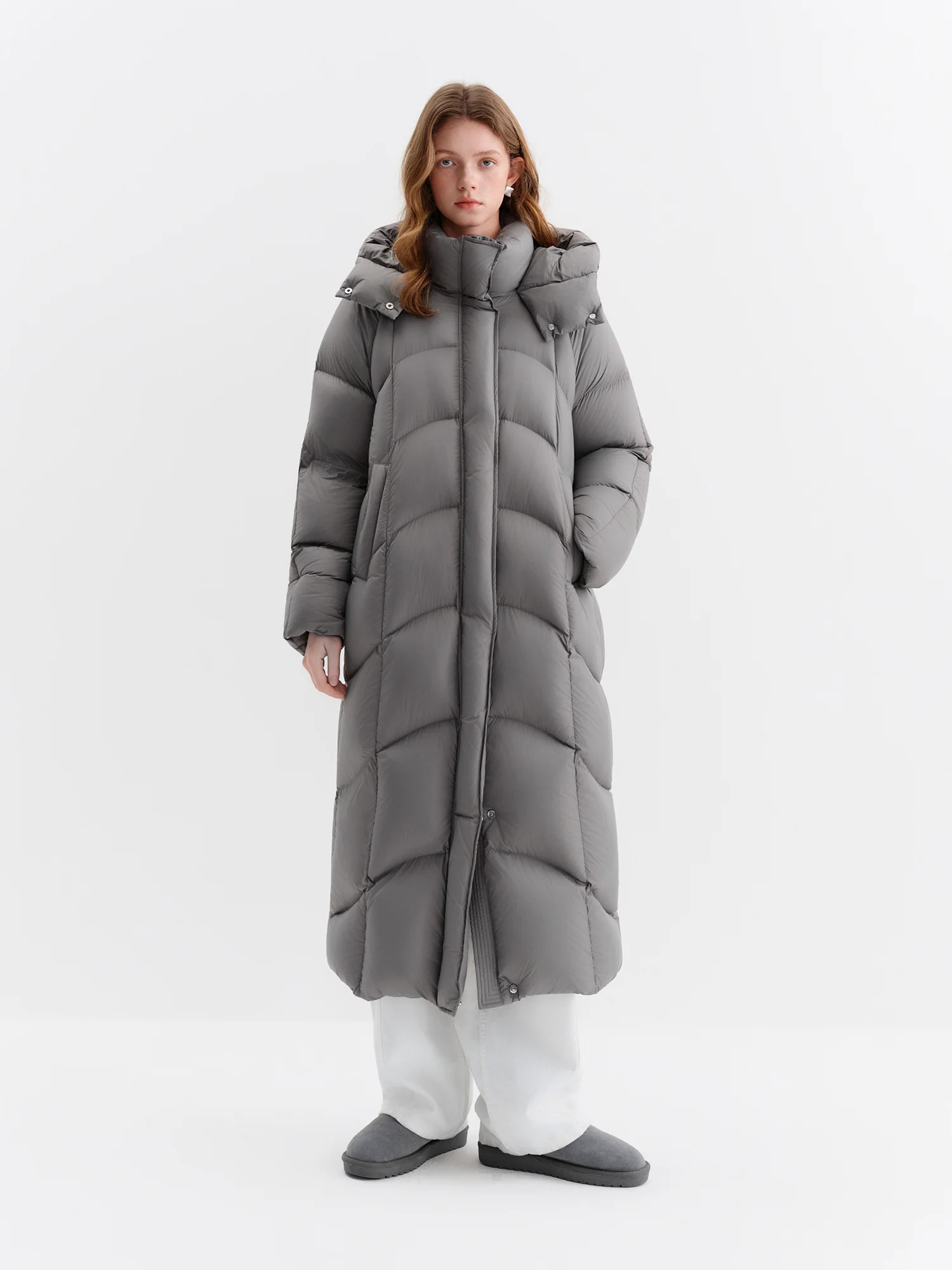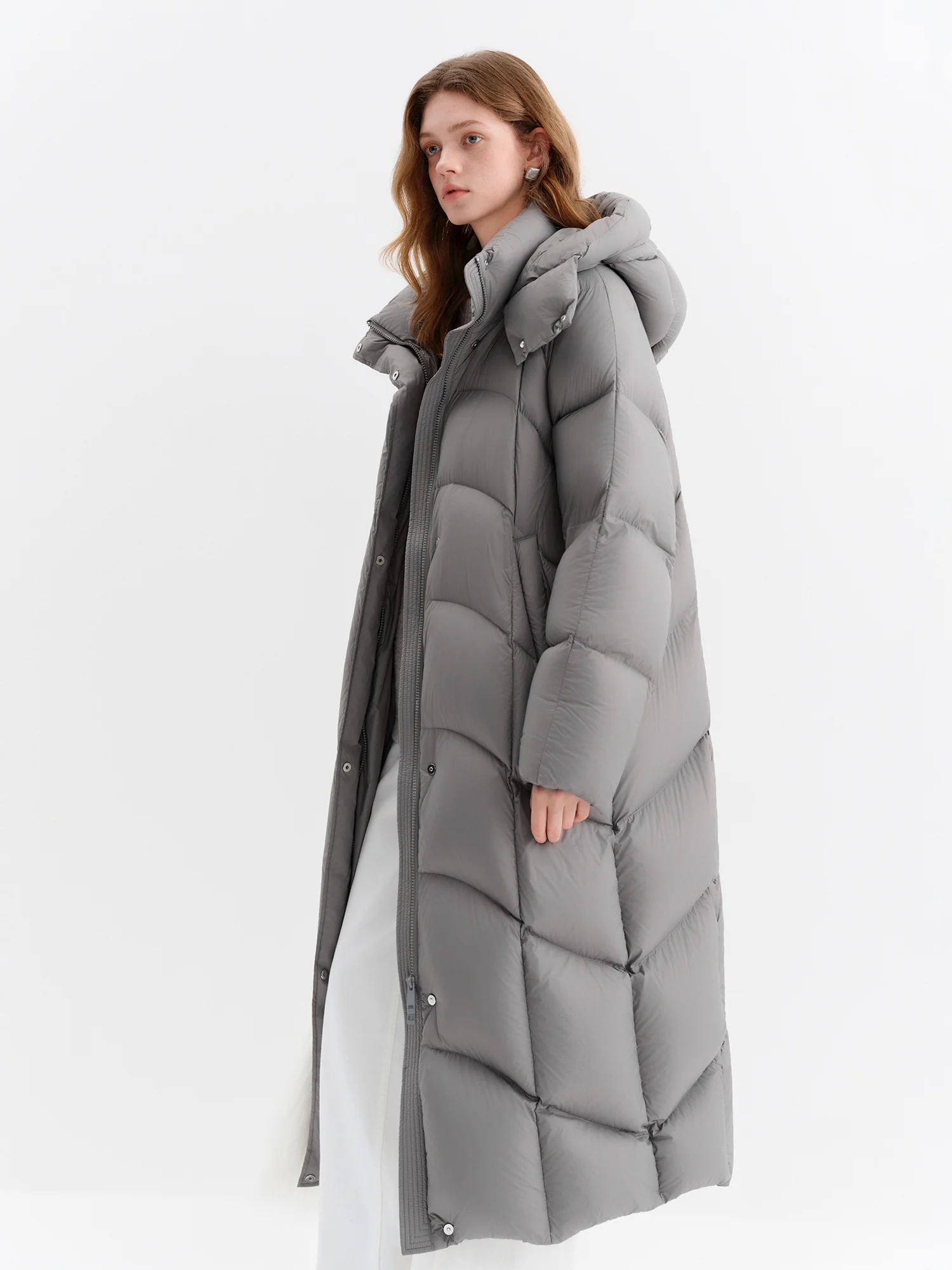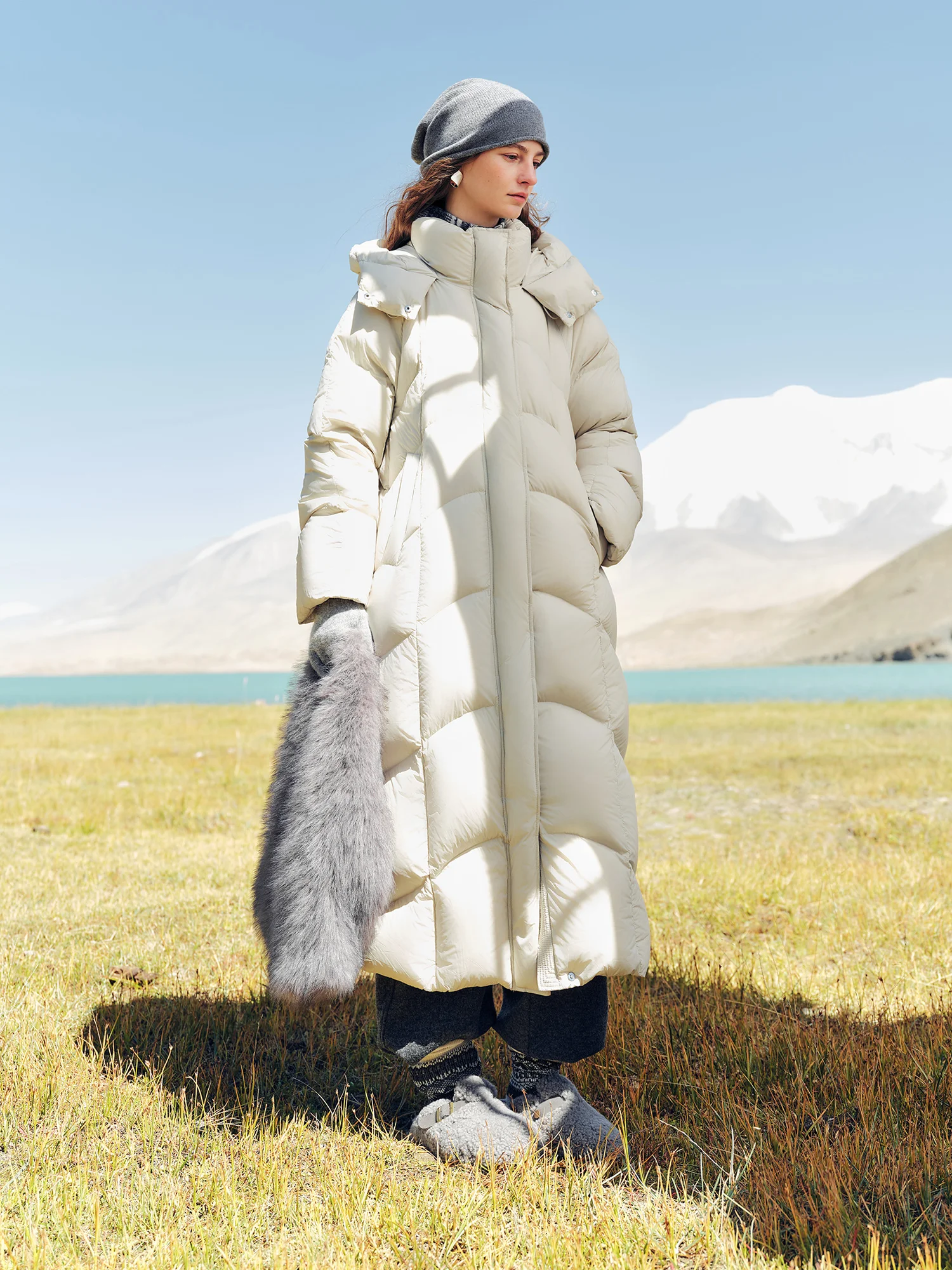 Women’s Long Hooded Winter Parka with White Goose Down Filling