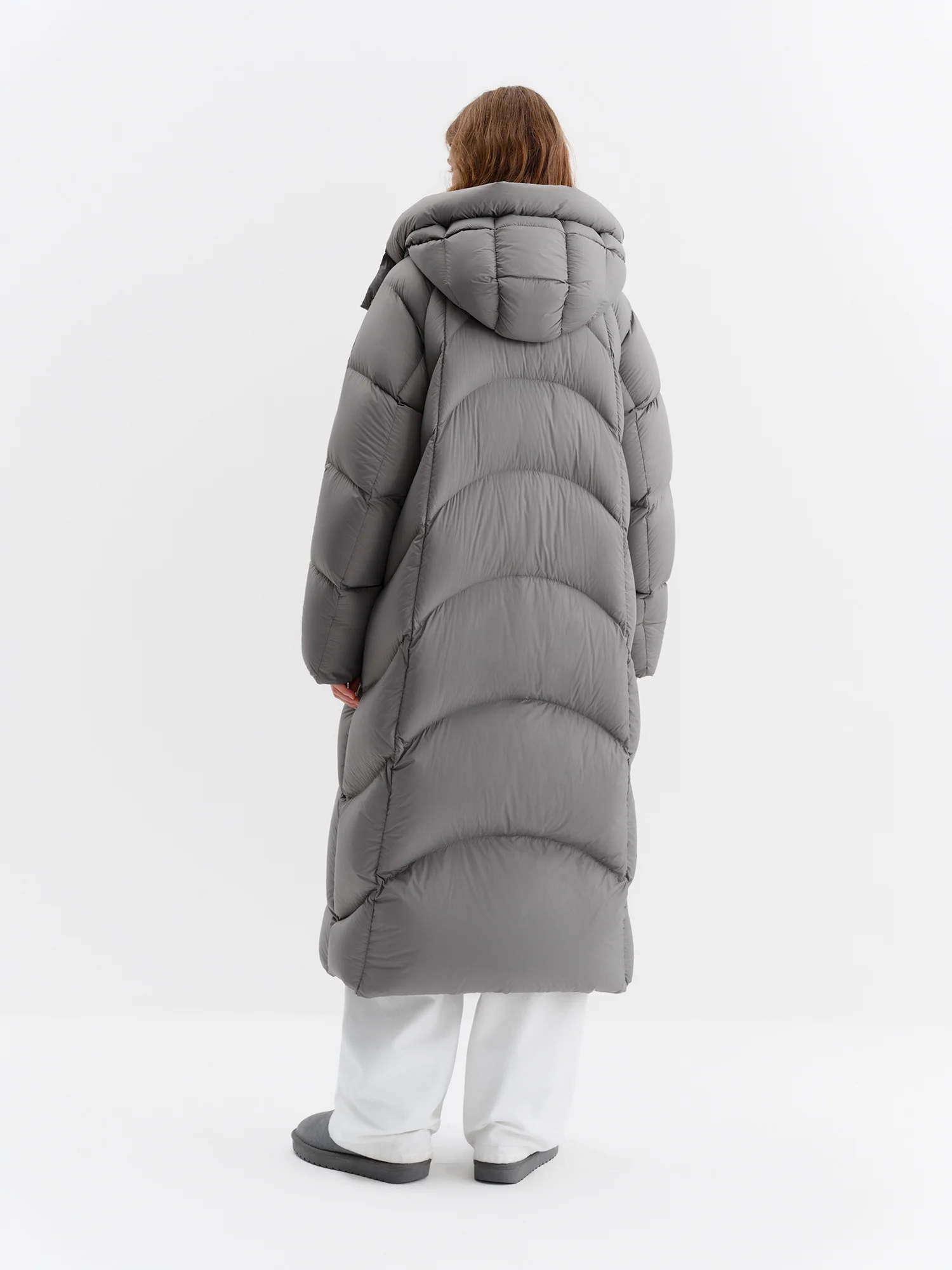 Fit Notes: The wide-waisted cut gently defines the silhouette without restricting movement. Available in sizes XXS to L, this parka accommodates a range of body shapes. The long length extends beyond the hips, offering additional warmth and layering options.