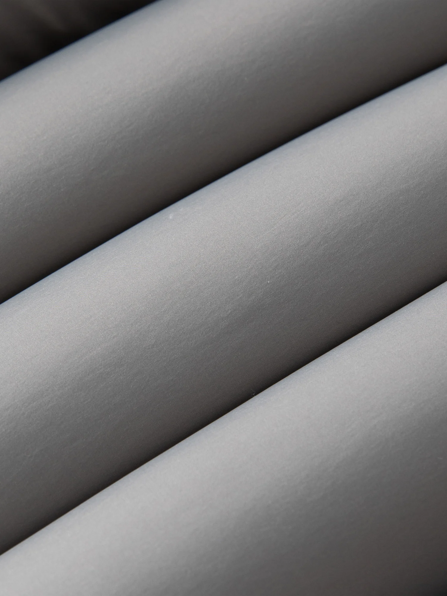Q? What is the fabric composition and how does it feel?A Crafted from 100% nylon broadcloth, the fabric is lightweight yet durable with a smooth texture, providing reliable protection against wind and light moisture.