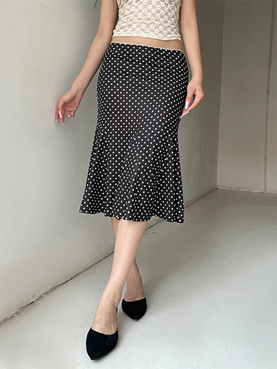 Women’s Polka Dot Midi Skirt – Vintage Style Trumpet Cut