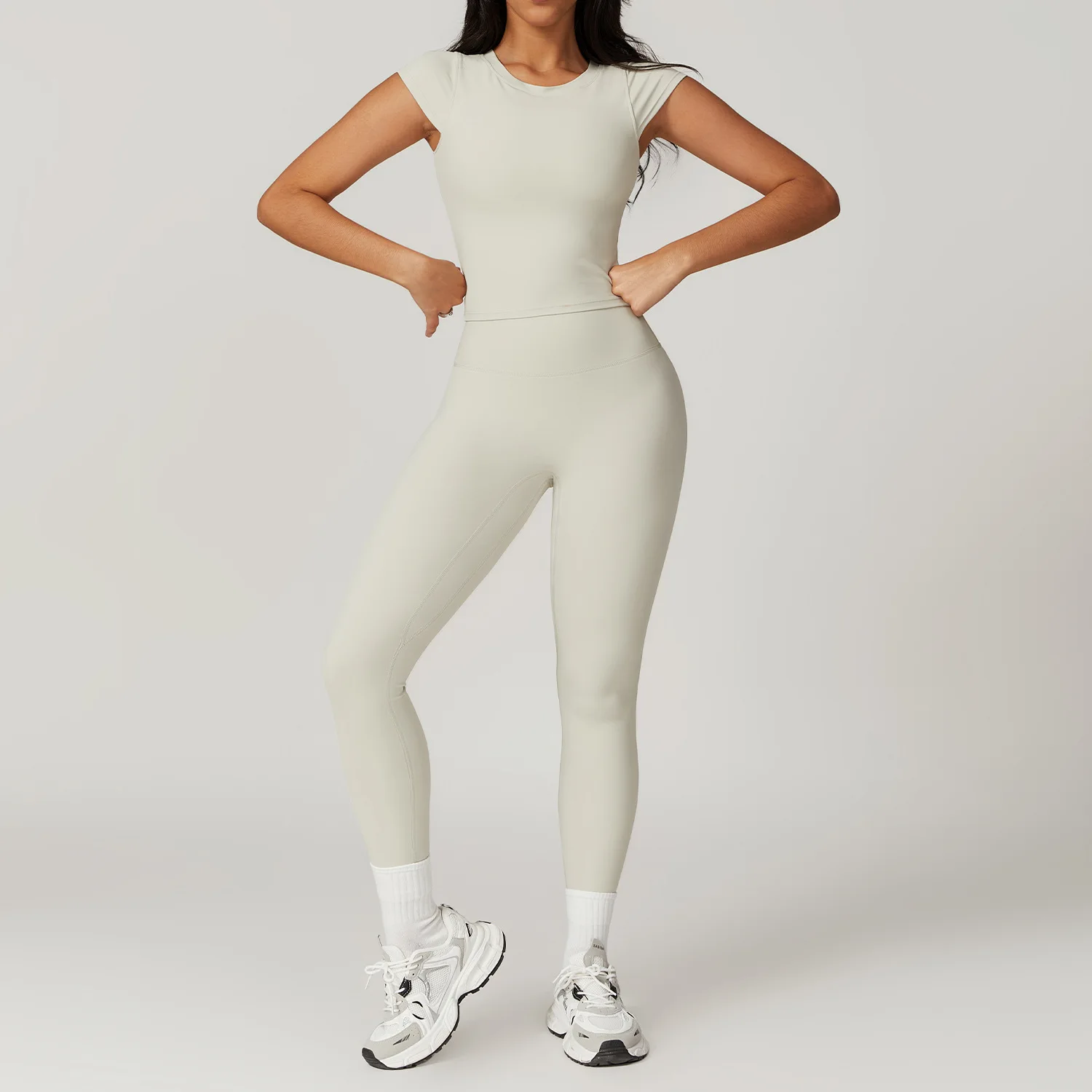 Styling Suggestions: Pair this yoga set with minimalist trainers for a polished gym look or layer under a lightweight jacket for casual weekend outings. The elegant colour options also make it suitable for relaxed yoga sessions or light outdoor activities, effortlessly transitioning from workout to leisure.