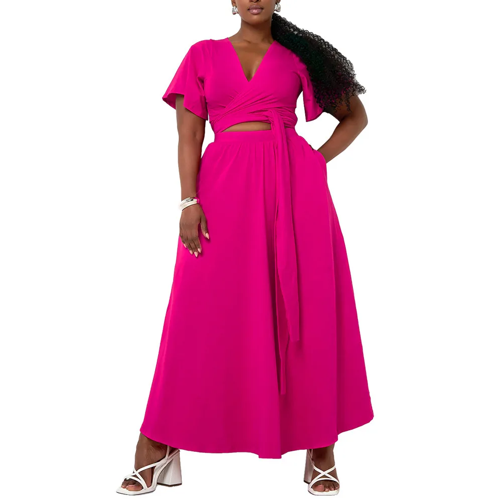 Step into the season with confidence and grace in our Chic Plus Size V-Neck Two Piece Set. Designed for Every Body, this ensemble encapsulates effortless elegance while celebrating natural shapes. Perfect for both casual outings and special gatherings, this set is your go-to choice for chic summer style.