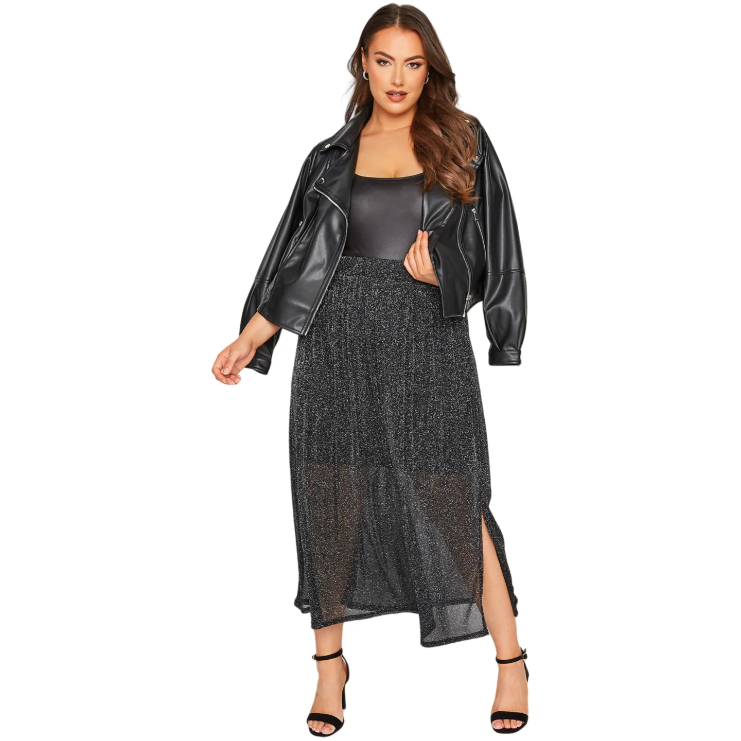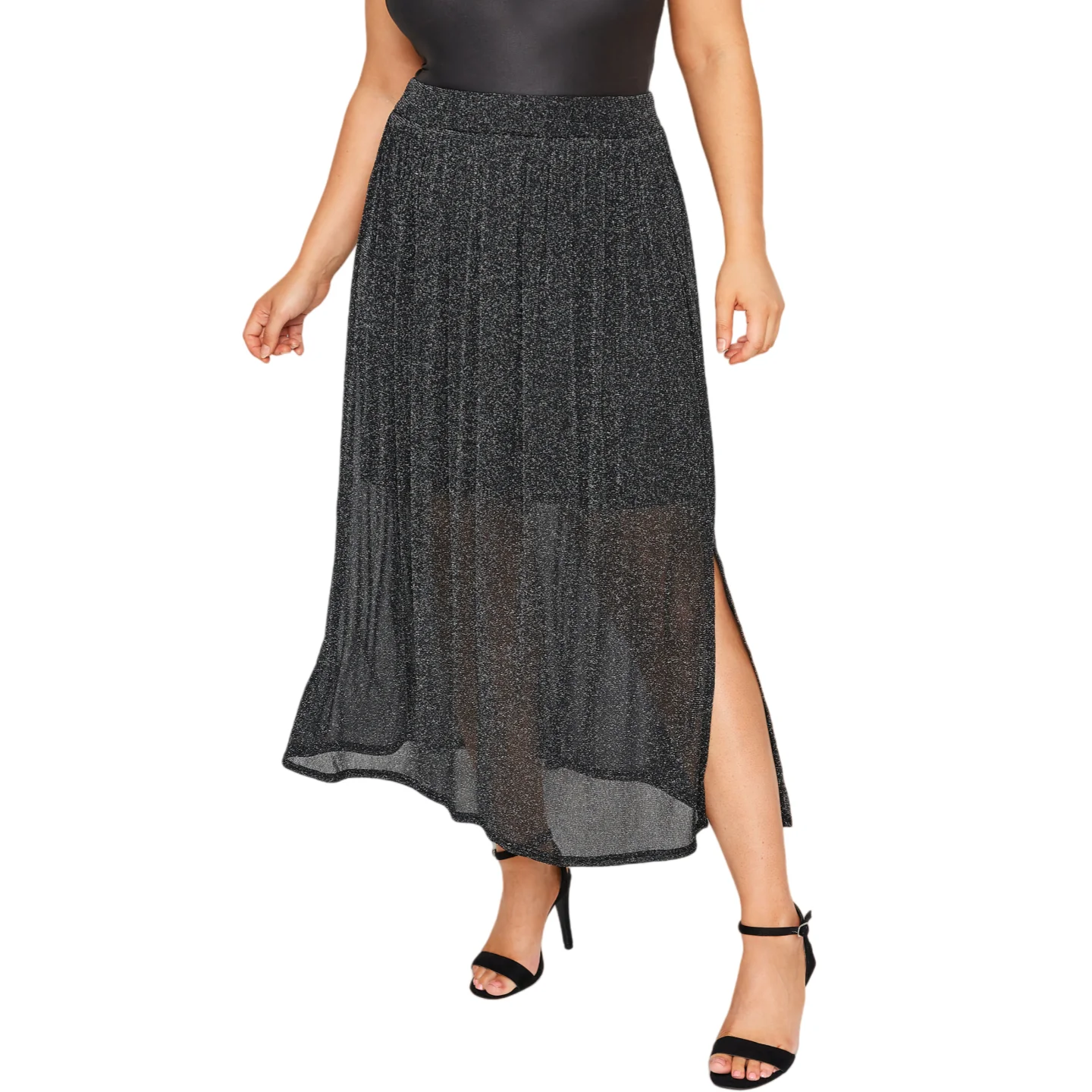 Elegant Plus Size Glitter Midi Skirt for Summer Parties
