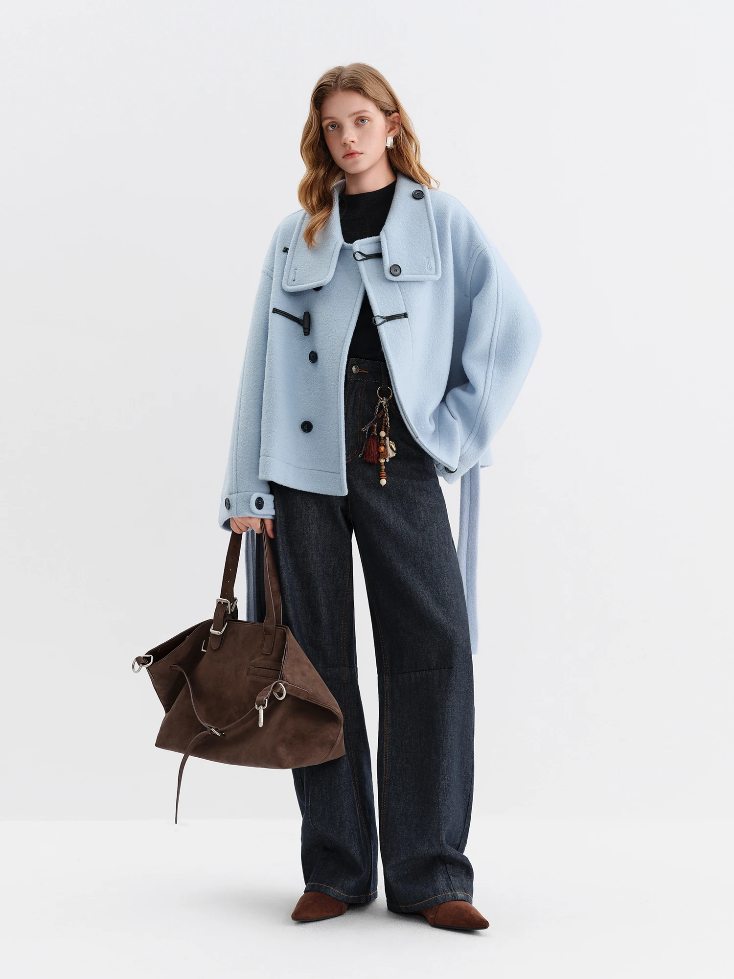 Designed for the modern woman who values refined minimalism, this retro-inspired A-line pea coat combines classic tailoring with contemporary comfort. Crafted from an 89% wool and 11% polyester blend, it offers warmth and structure without excess bulk, ideal for cooler office days.