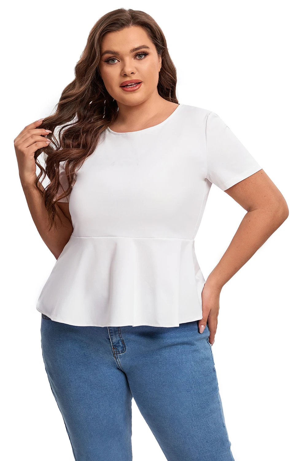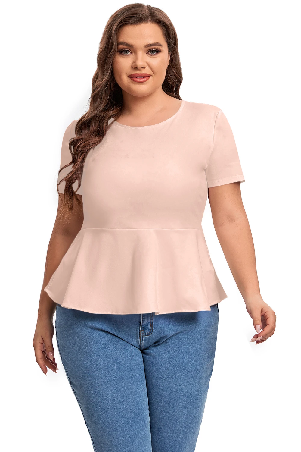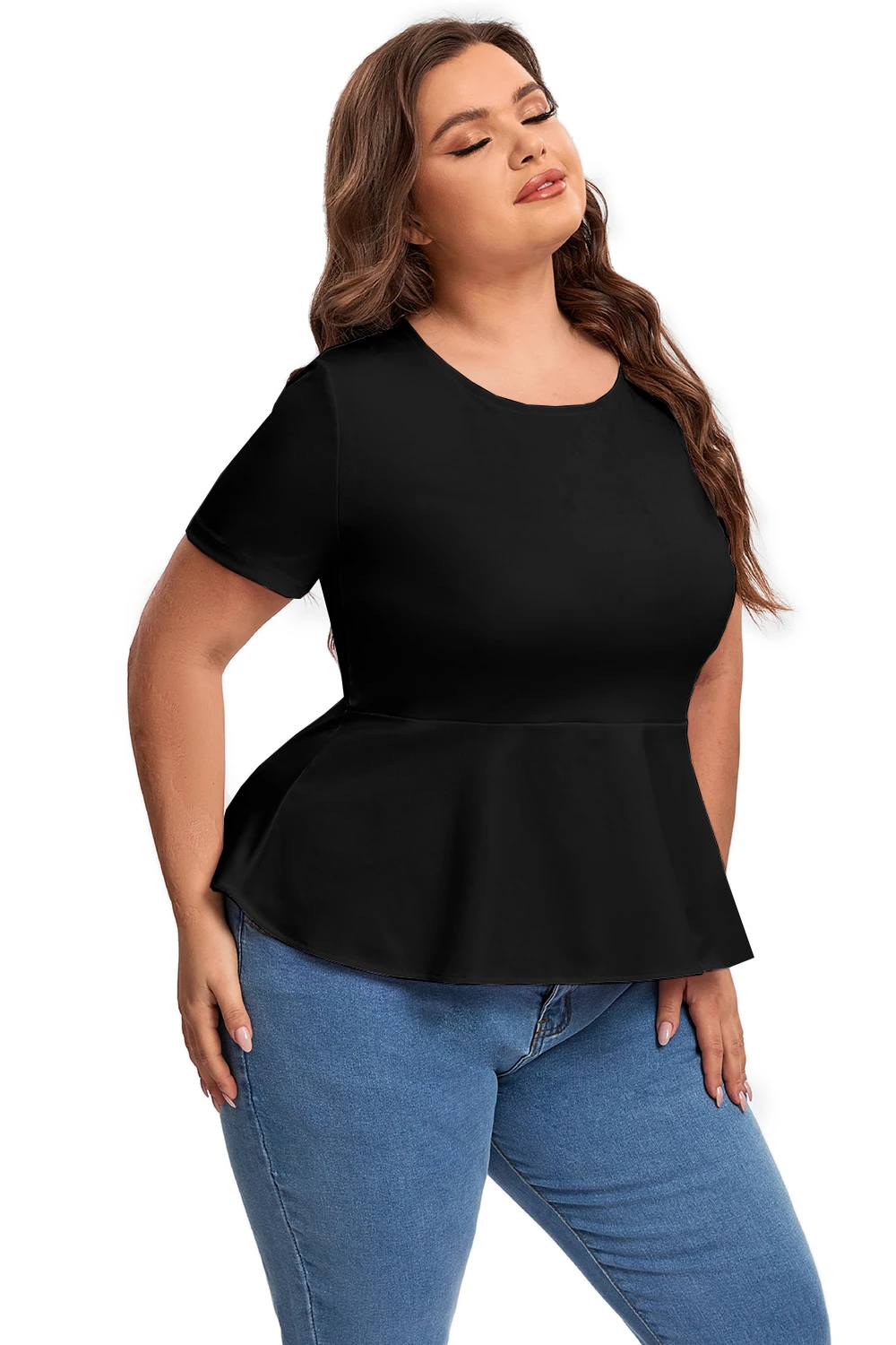 Womens Short Sleeve Plus Size Summer Peplum Top