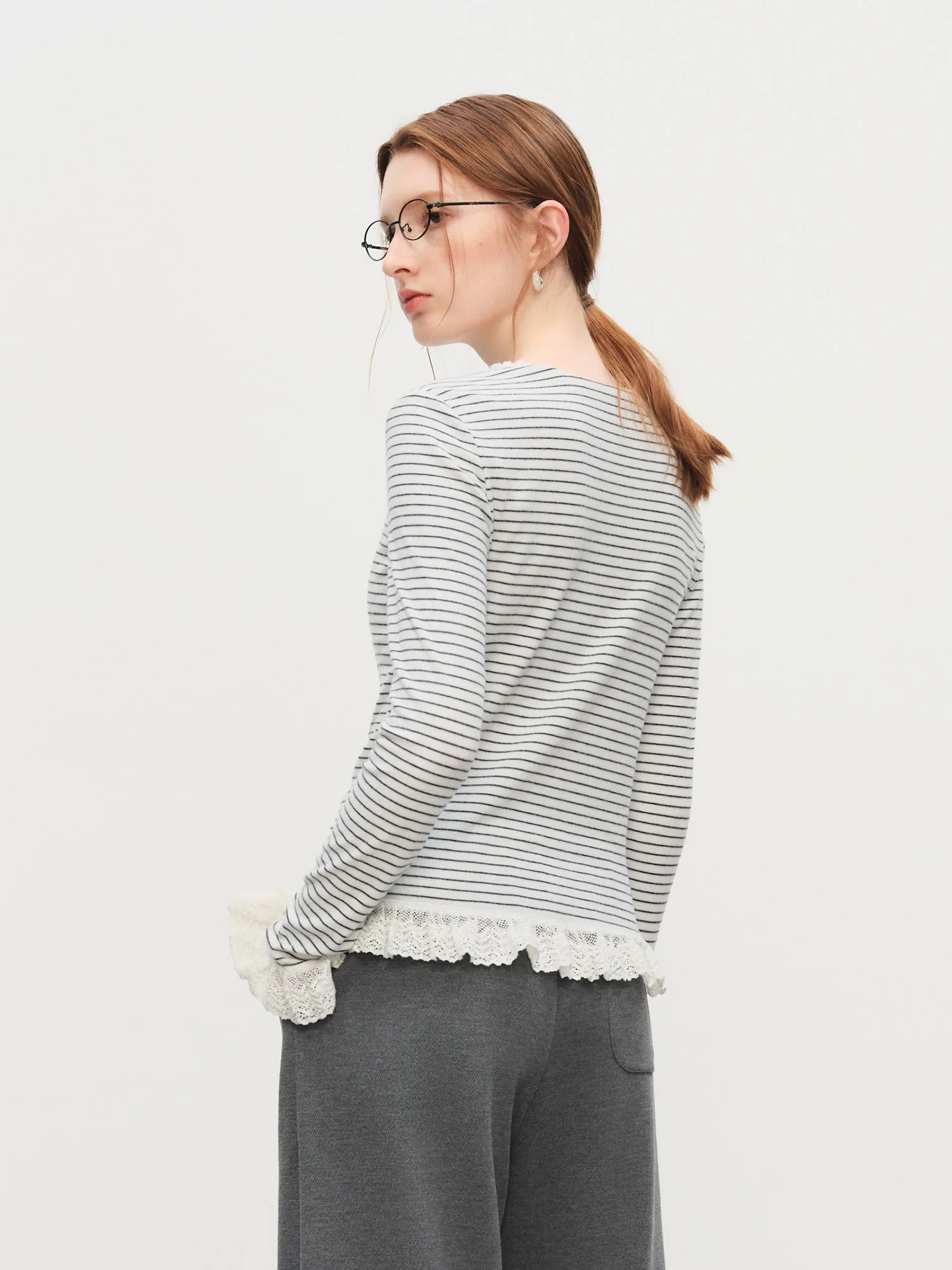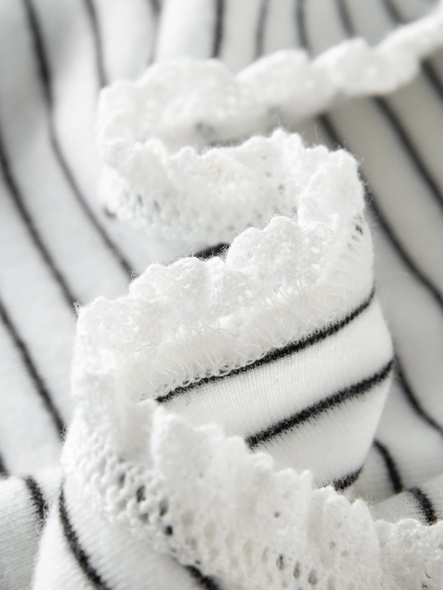 10 reviews for Women’s Soft Striped Lace Trim Top in Black