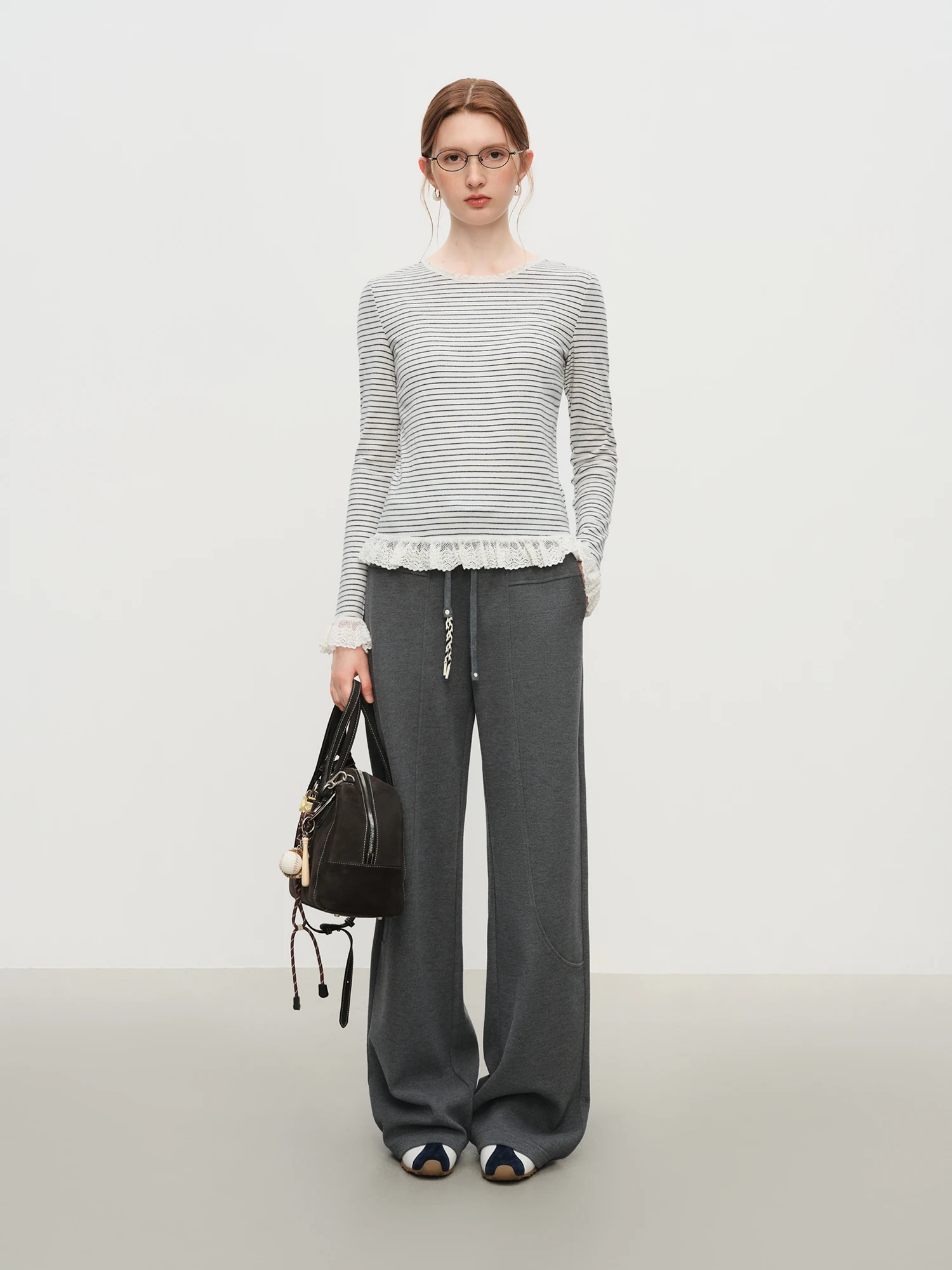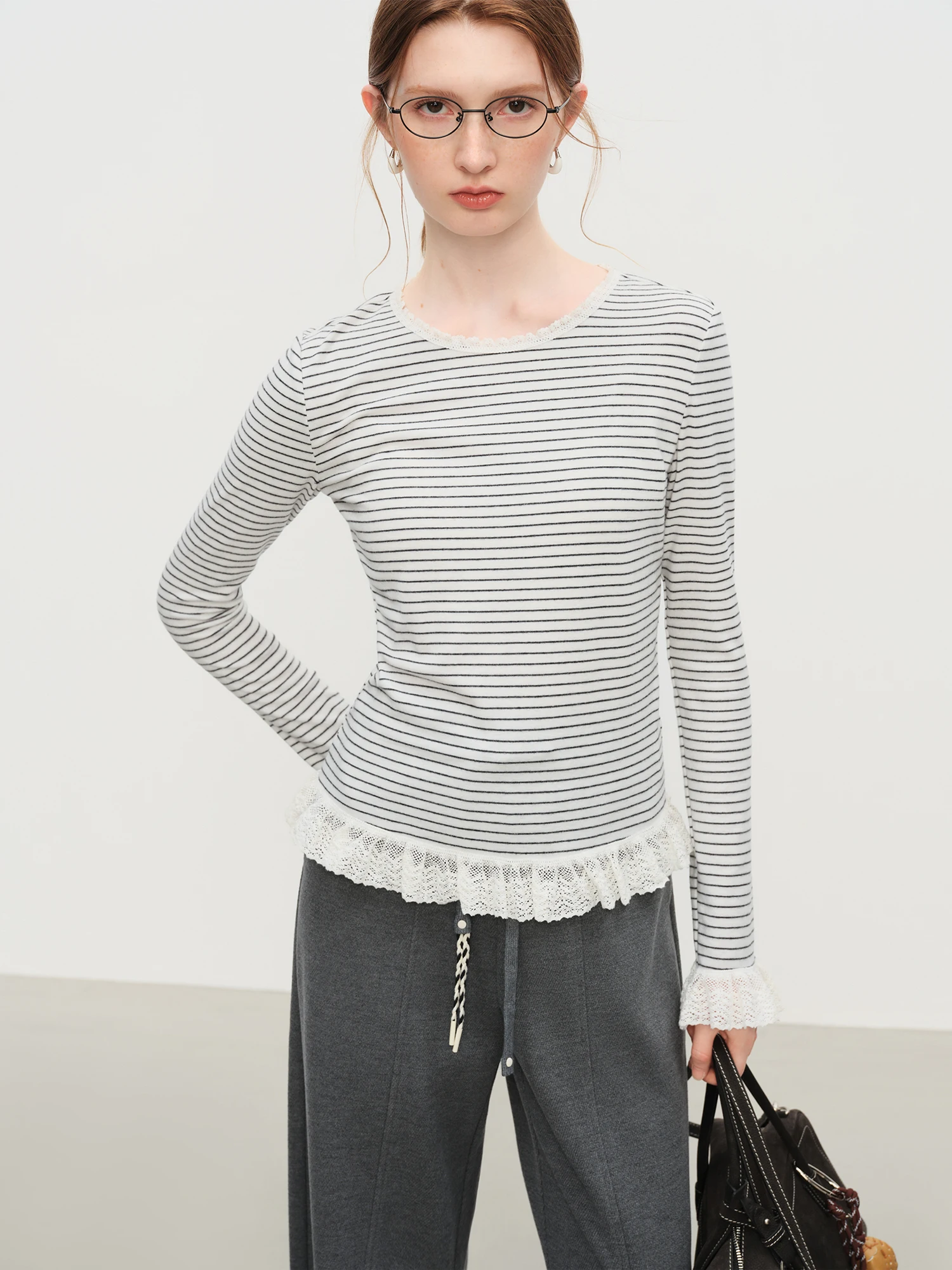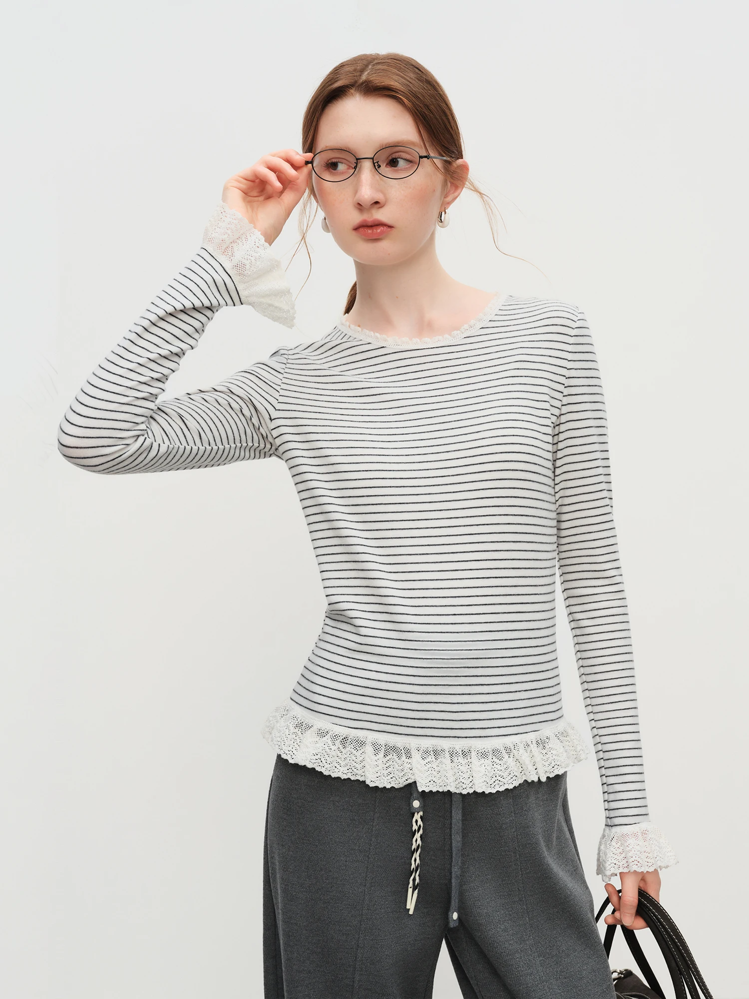 Embrace the refined simplicity of the Women’s Soft Striped Lace Trim Top in Black, a thoughtful addition to your autumn and winter wardrobe. This top offers a balanced blend of comfort and understated sophistication, tailored for those who appreciate modern minimalism. Its classic black hue and delicate lace trim provide subtle detail without overwhelming the design, making it suitable for a variety of settings.