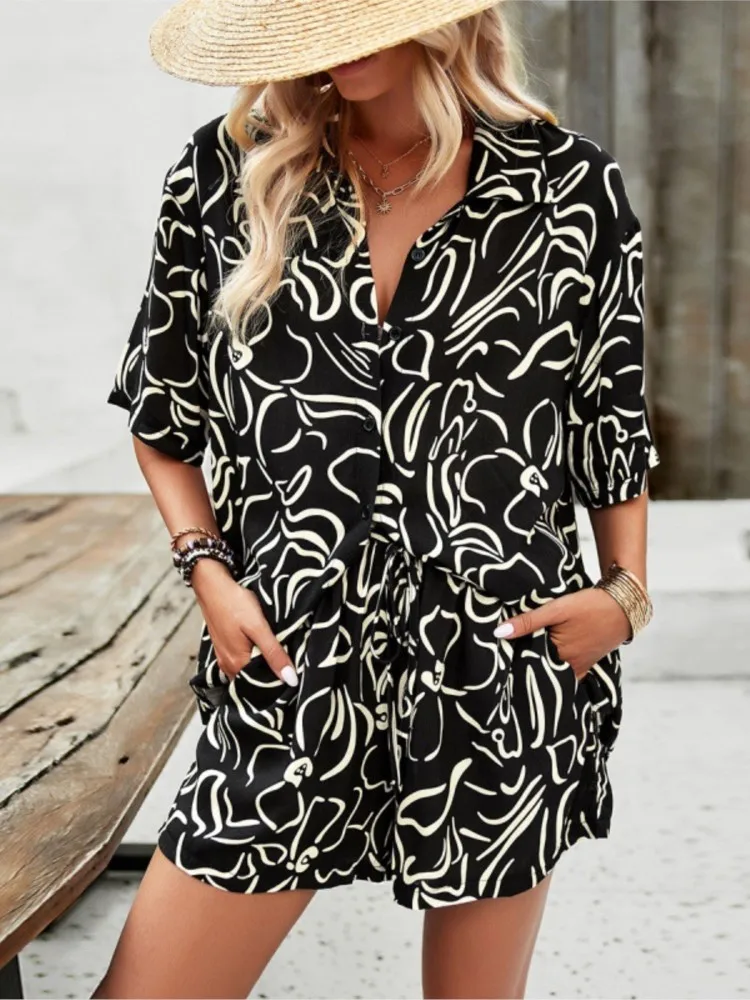 1 review for Printed Button-Up & Belted Shorts Set – Effortless Style