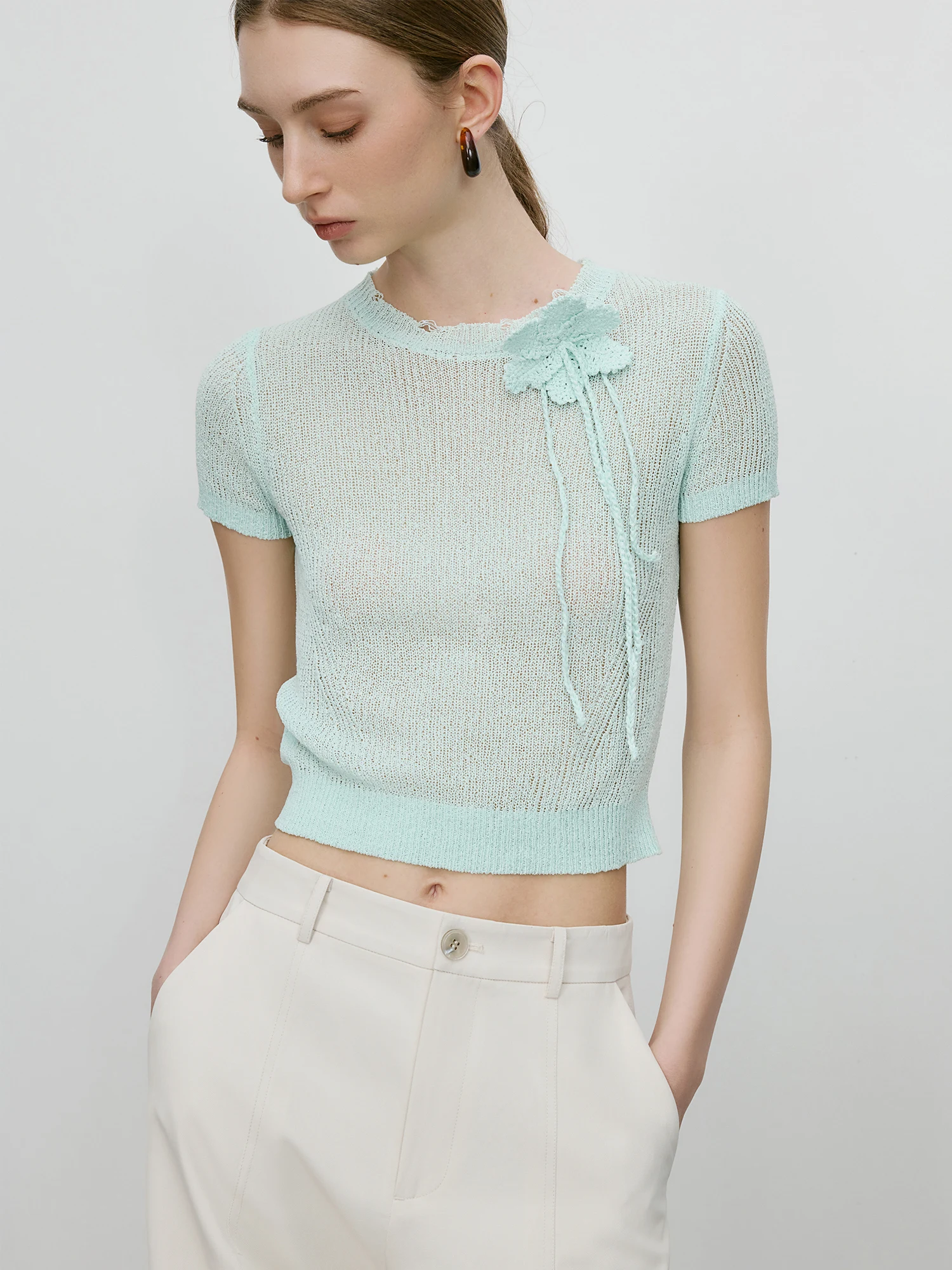 Embodying modern minimalism with a refined silhouette, this Womens Summer Short Knit Sweater Top in blue is designed to balance comfort and sophistication. Its cropped length and short sleeves provide breathability for warmer days, while the O-neck collar introduces a subtle classic touch. Crafted from a blend of 57.9% cellulose and 42.1% polyester microfiber, the medium-weight knit fabric offers a pleasant texture with moderate stretch, making it suitable for both office environments and casual settings.