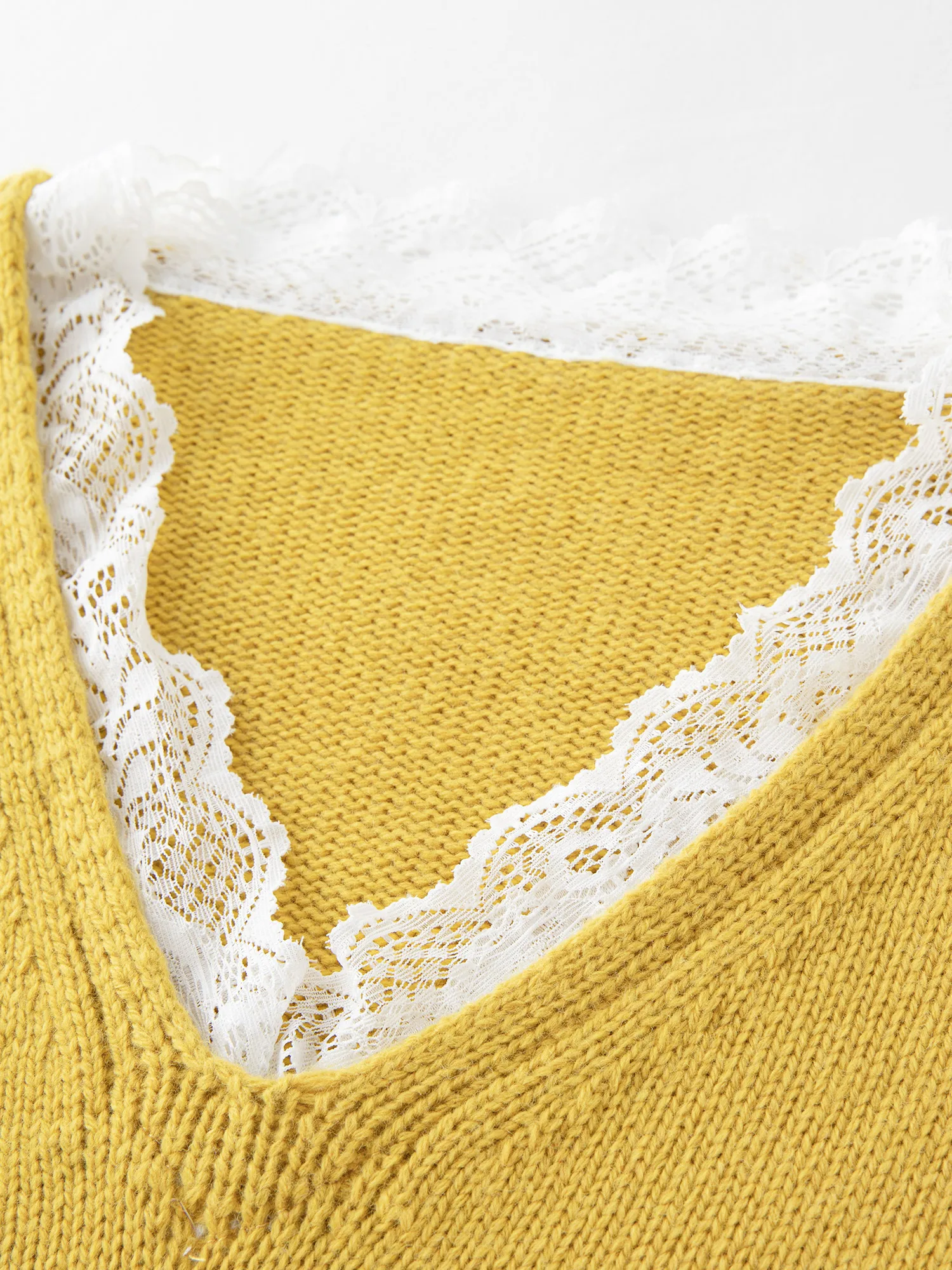 - Features: V-neck collar with a delicate lace knit texture in solid yellow or purple shades. Full-length sleeves and a pullover style with slight stretch provide ease of movement and a flattering silhouette.