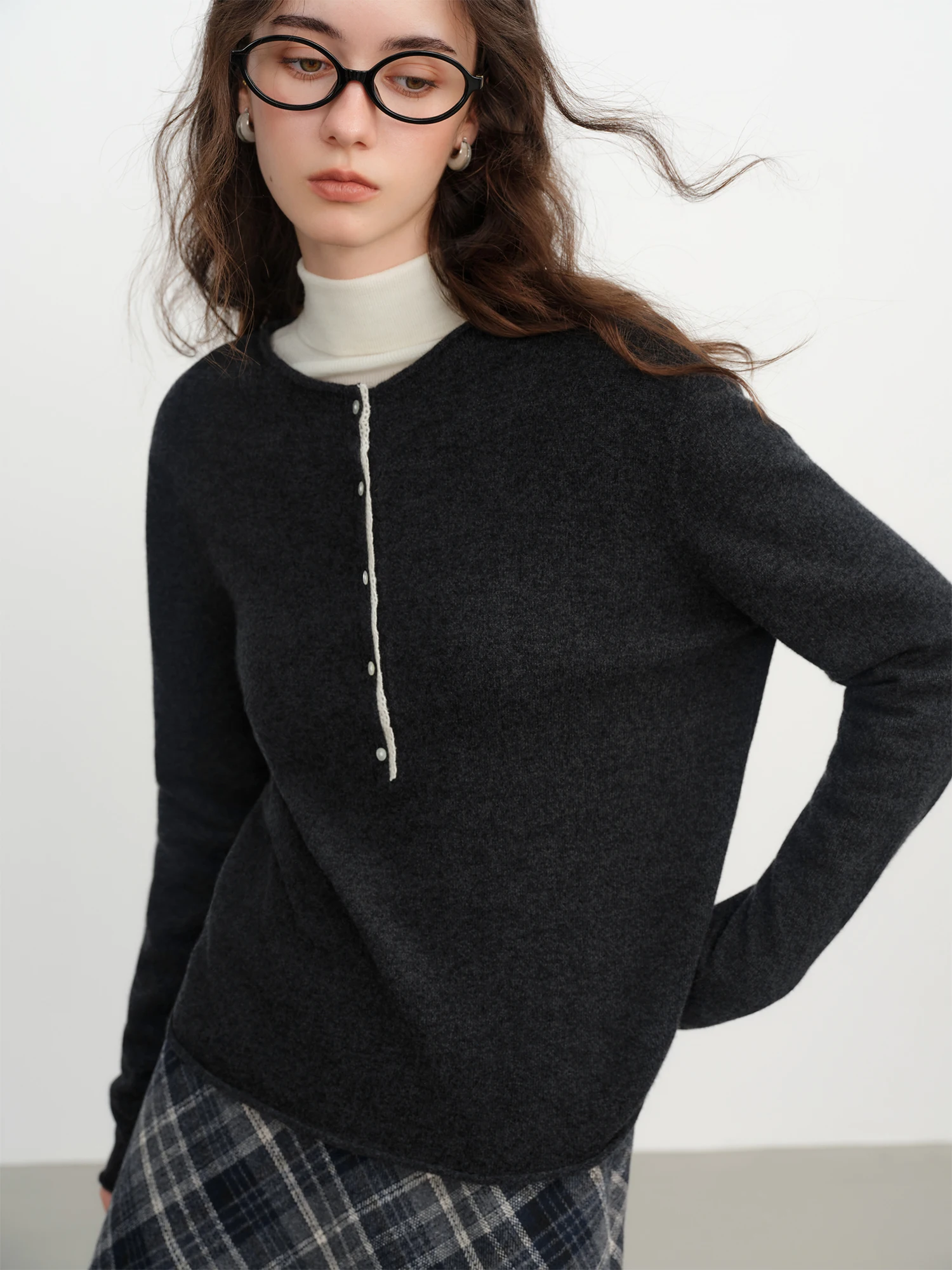 Designed for the contemporary woman aged 25-34, this wool blend knit sweater offers a refined silhouette with its regular fit and elegant A-straight pattern. Crafted from 100% fine yarn wool, it provides lightweight warmth suitable for winter office settings.
