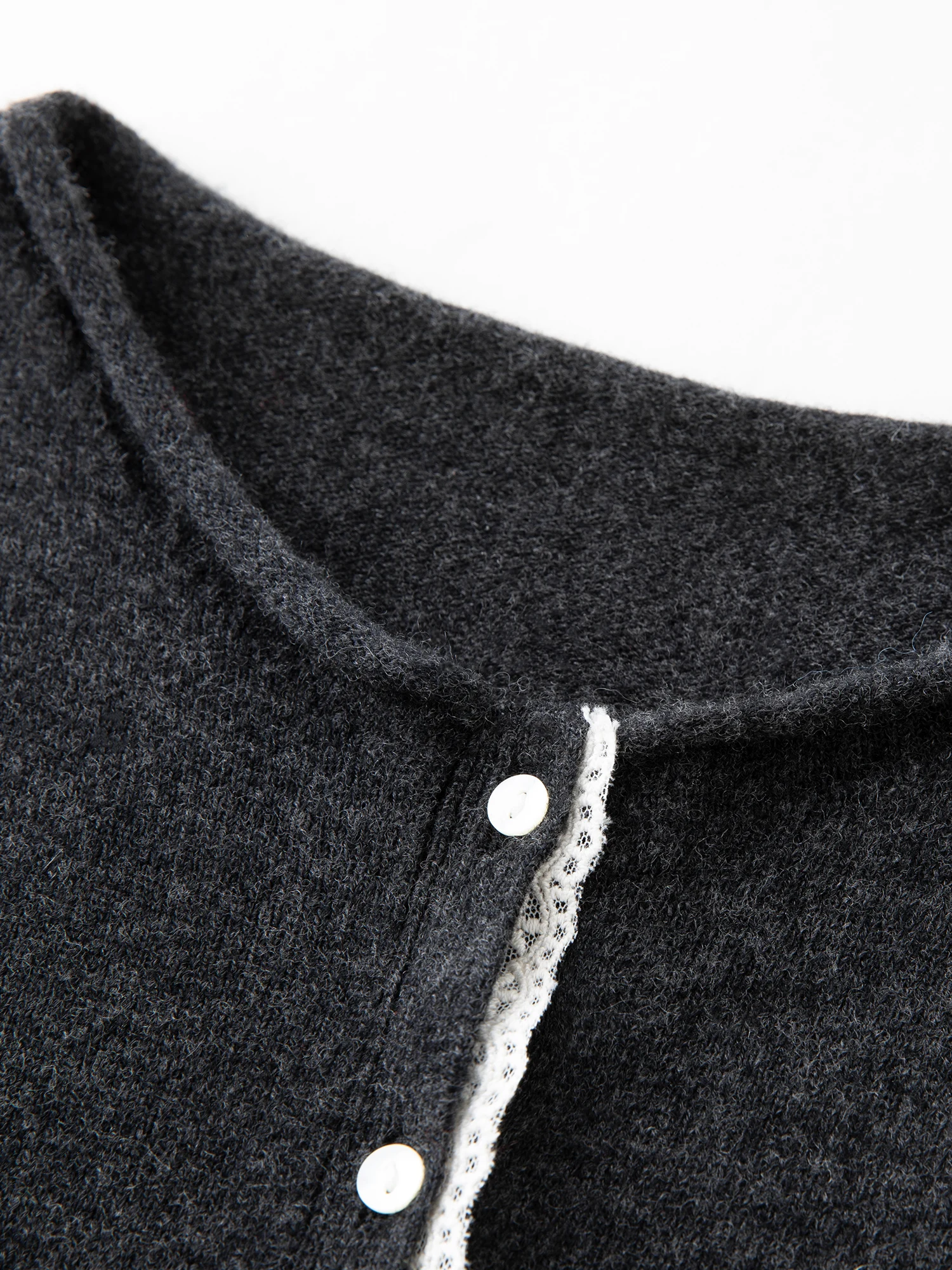 Q: Is the sweater suitable for office wear?A: Yes, its elegant design with lace trim and classic O-neck makes it appropriate for professional settings.