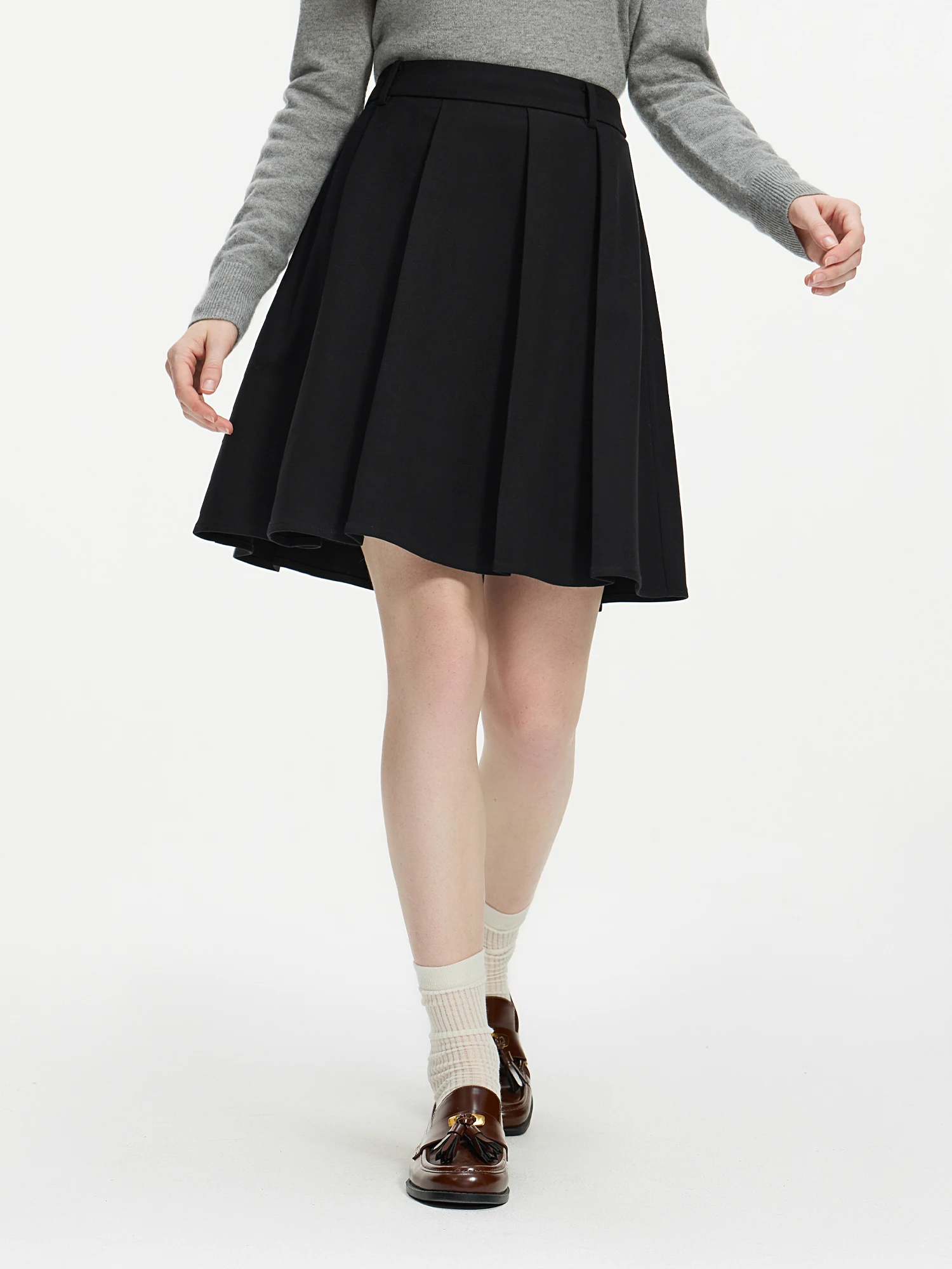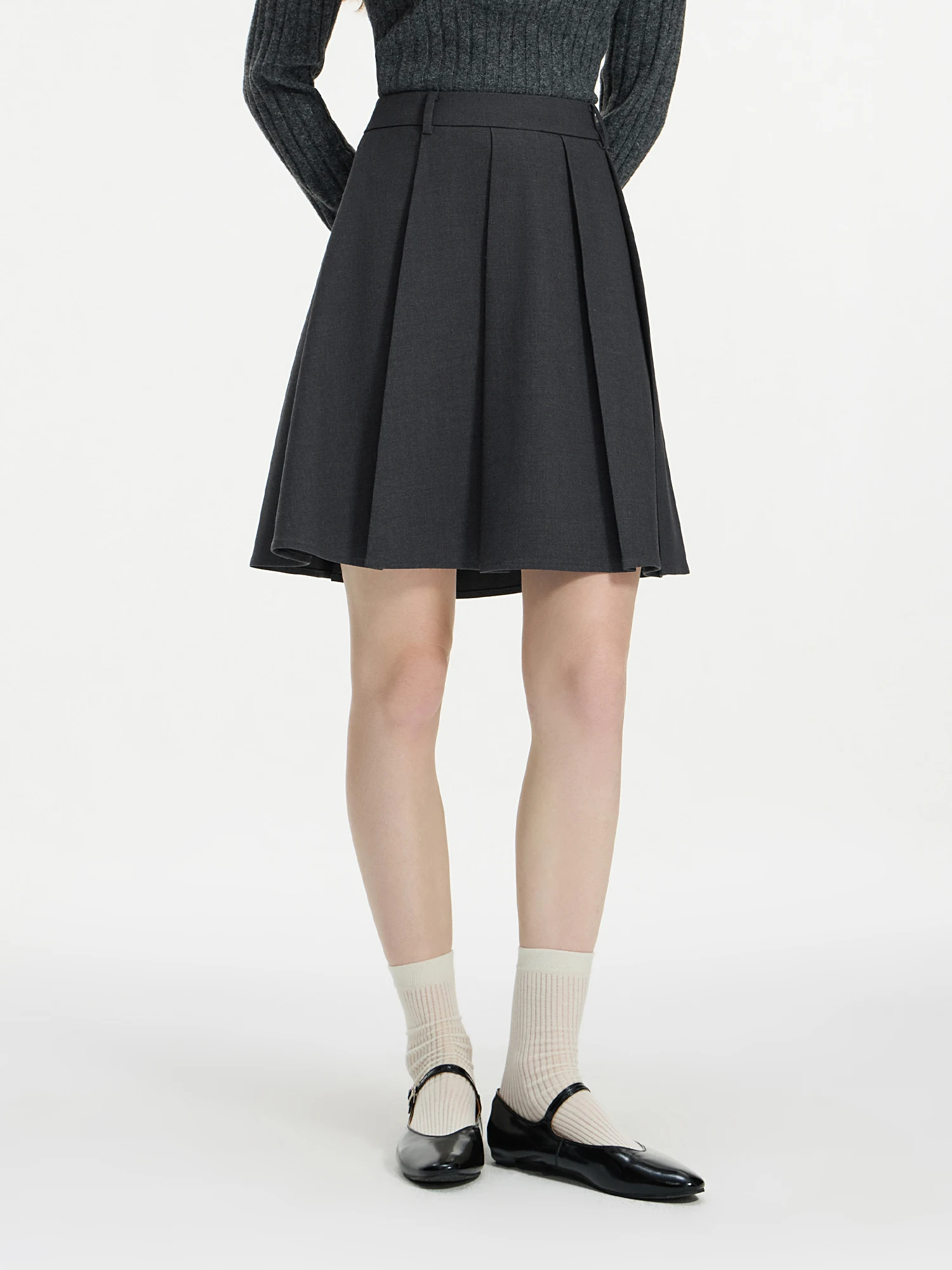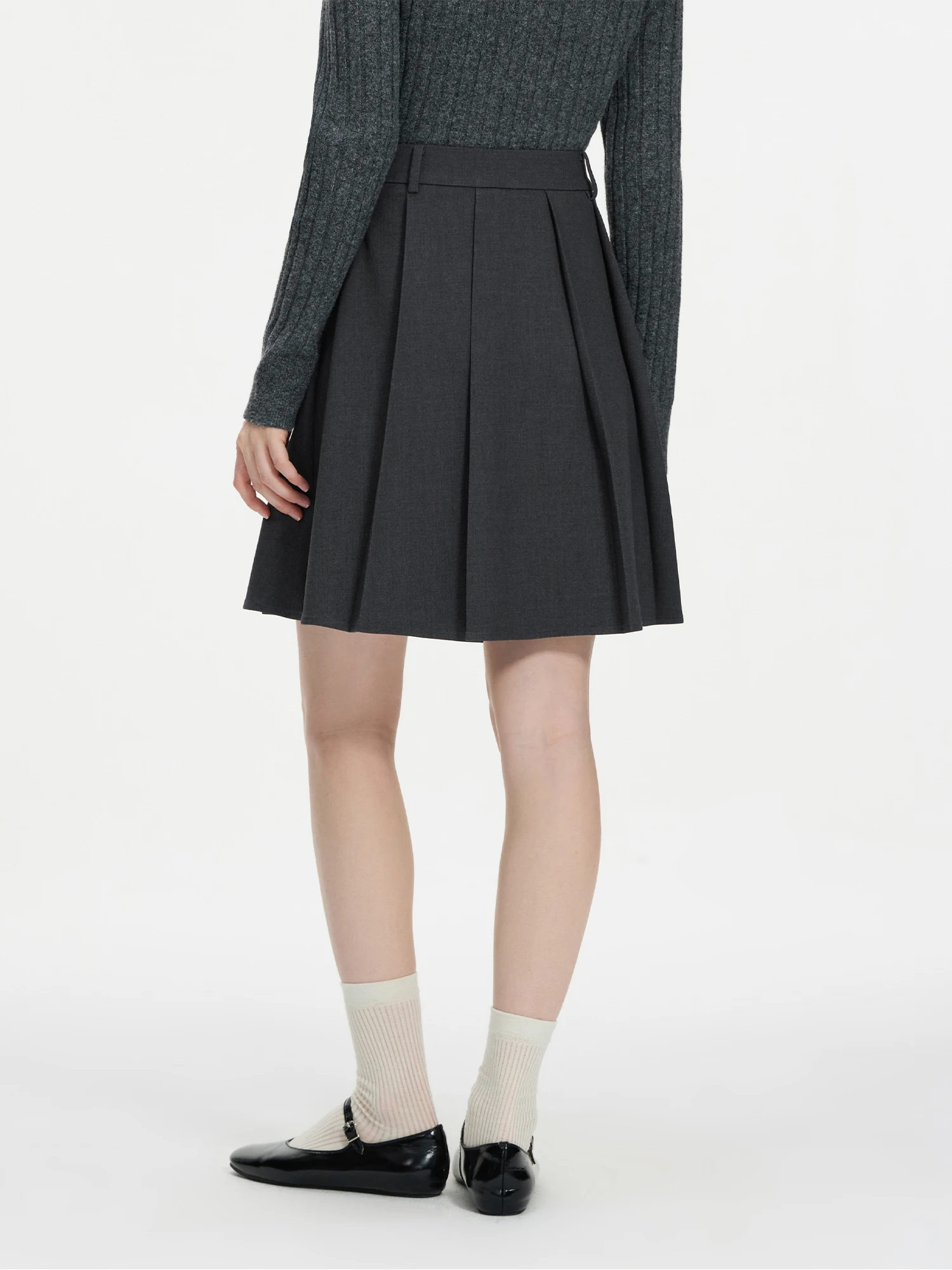 Women’s Wool Blend Pleated Skirt with High Waist, Above-Knee Length