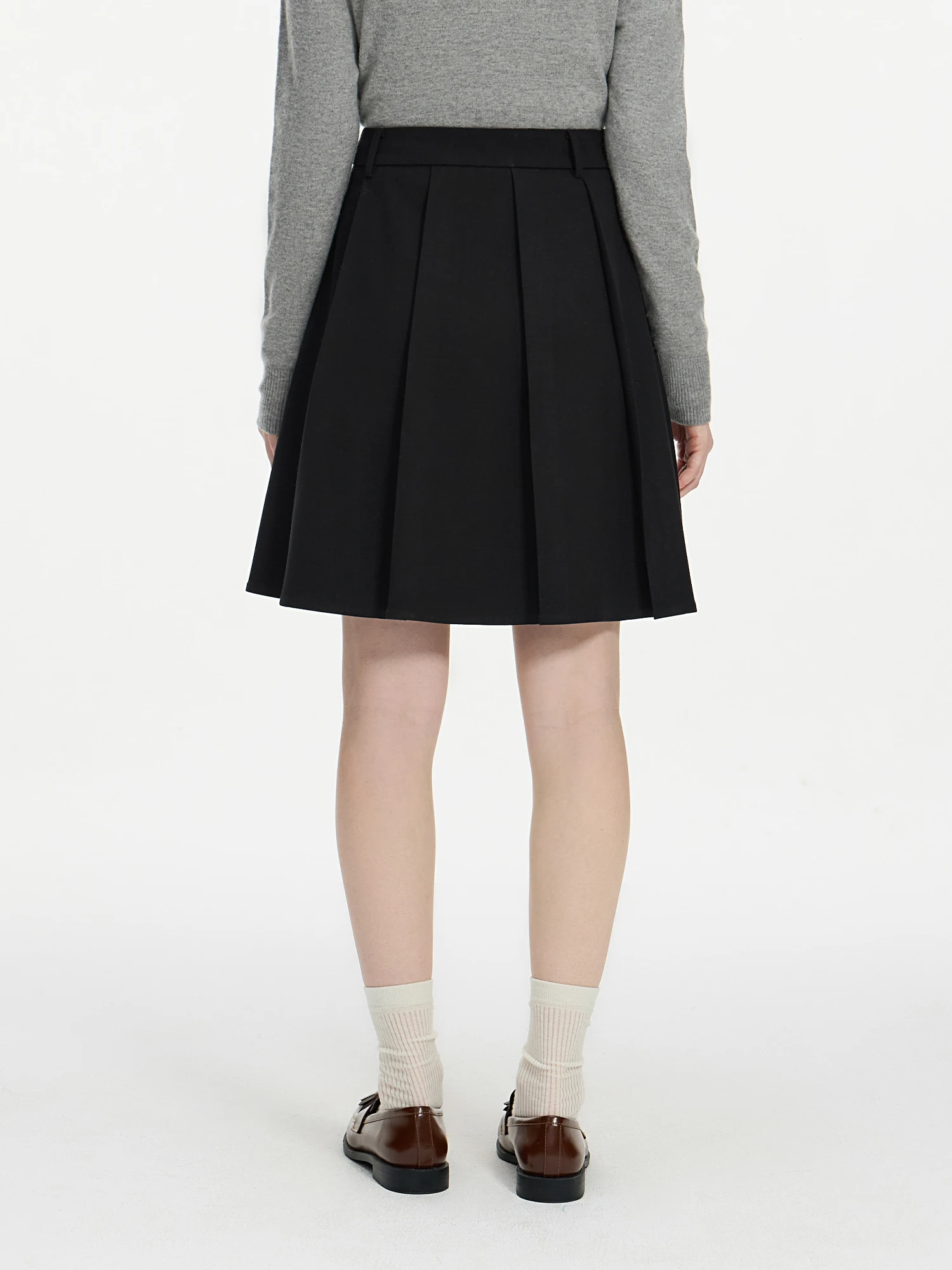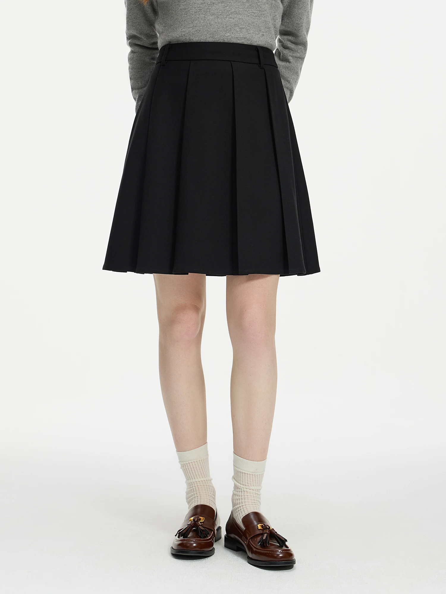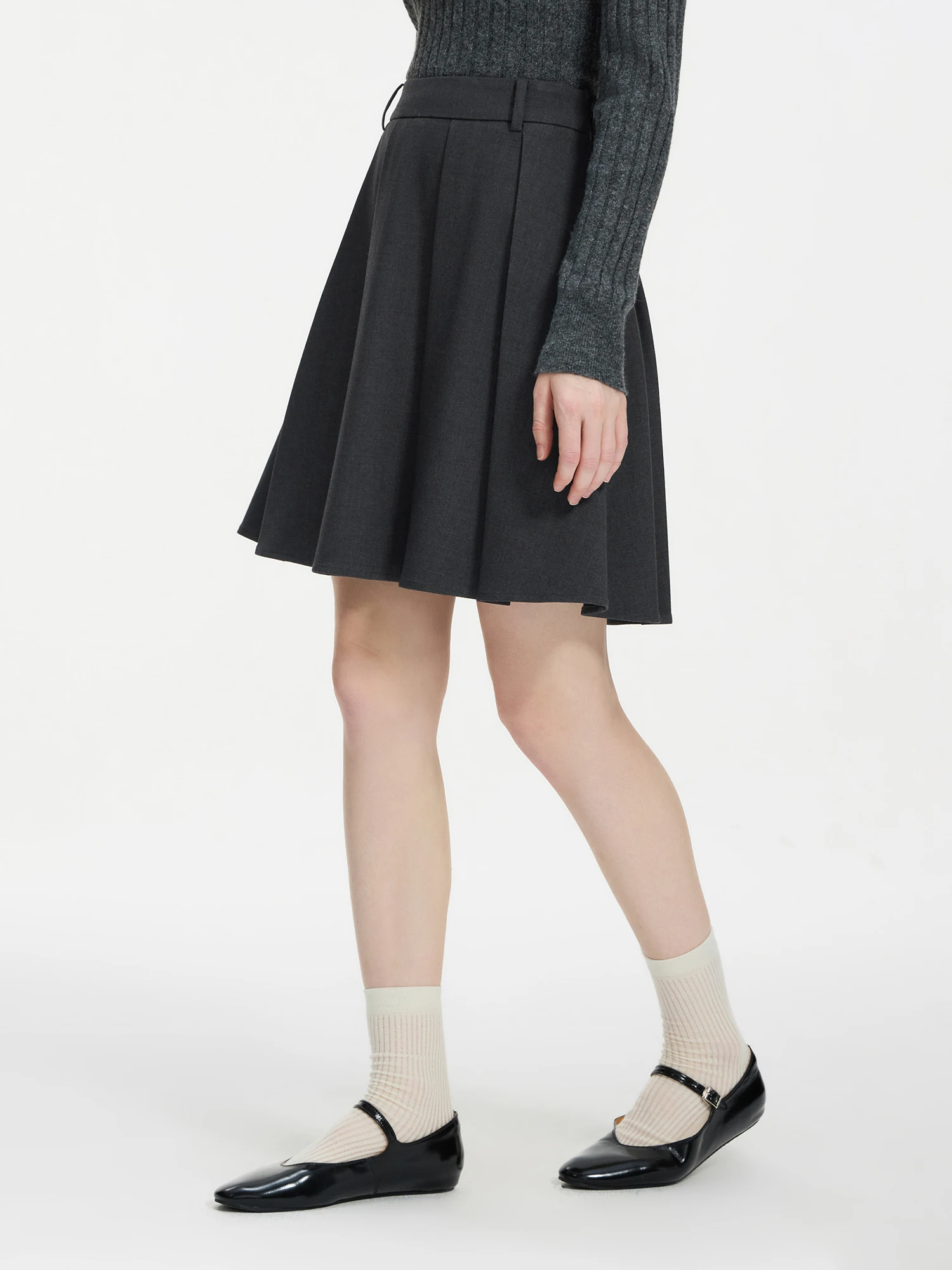 Women’s Wool Blend Pleated Skirt with High Waist, Above-Knee Length