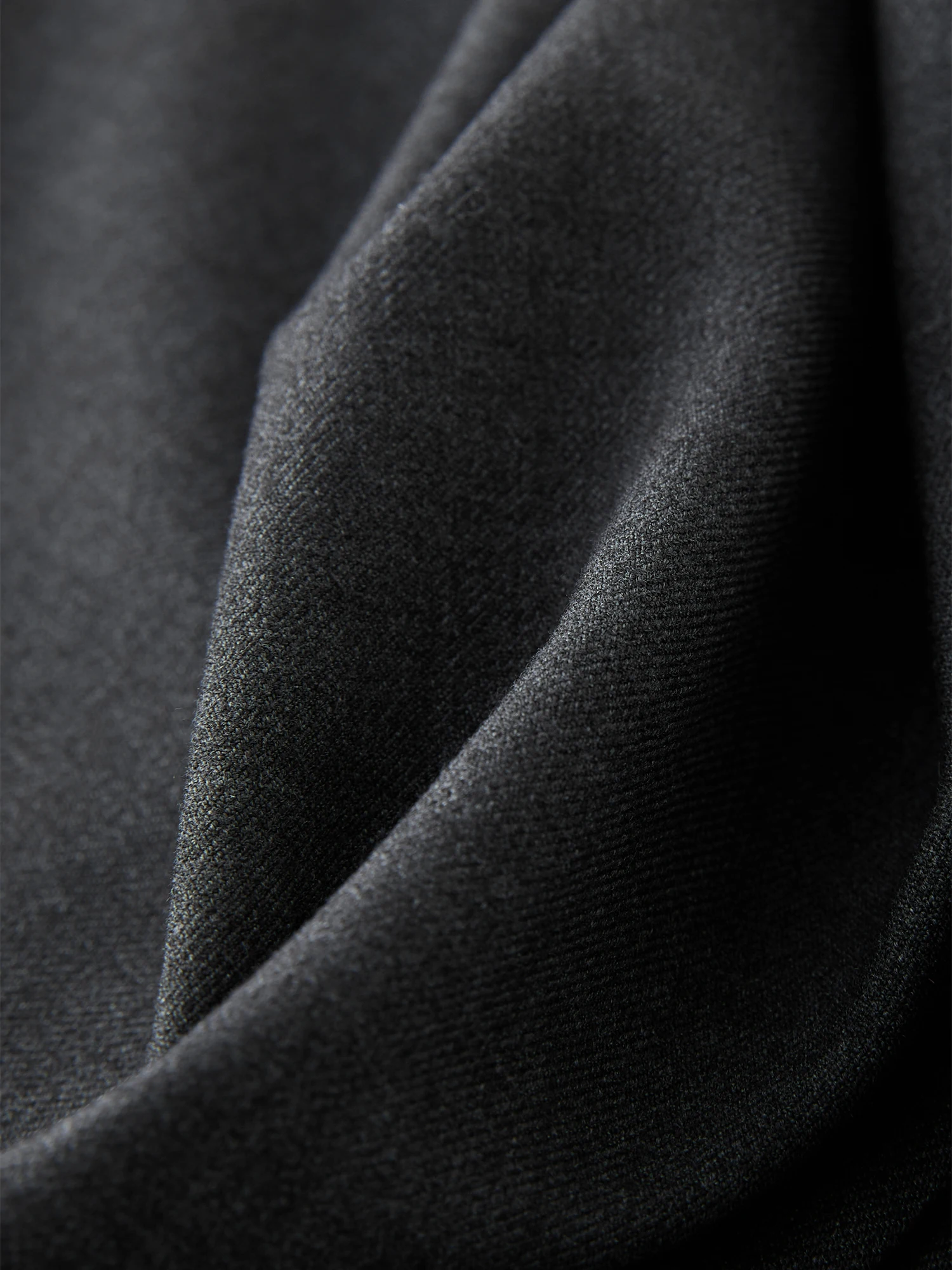 The blend of polyester and viscose ensures a soft yet structured feel, with spandex adding gentle elasticity. The woolen texture contributes warmth appropriate for cooler seasons. For care, gentle machine wash or hand wash is recommended to preserve fabric integrity and pleating.