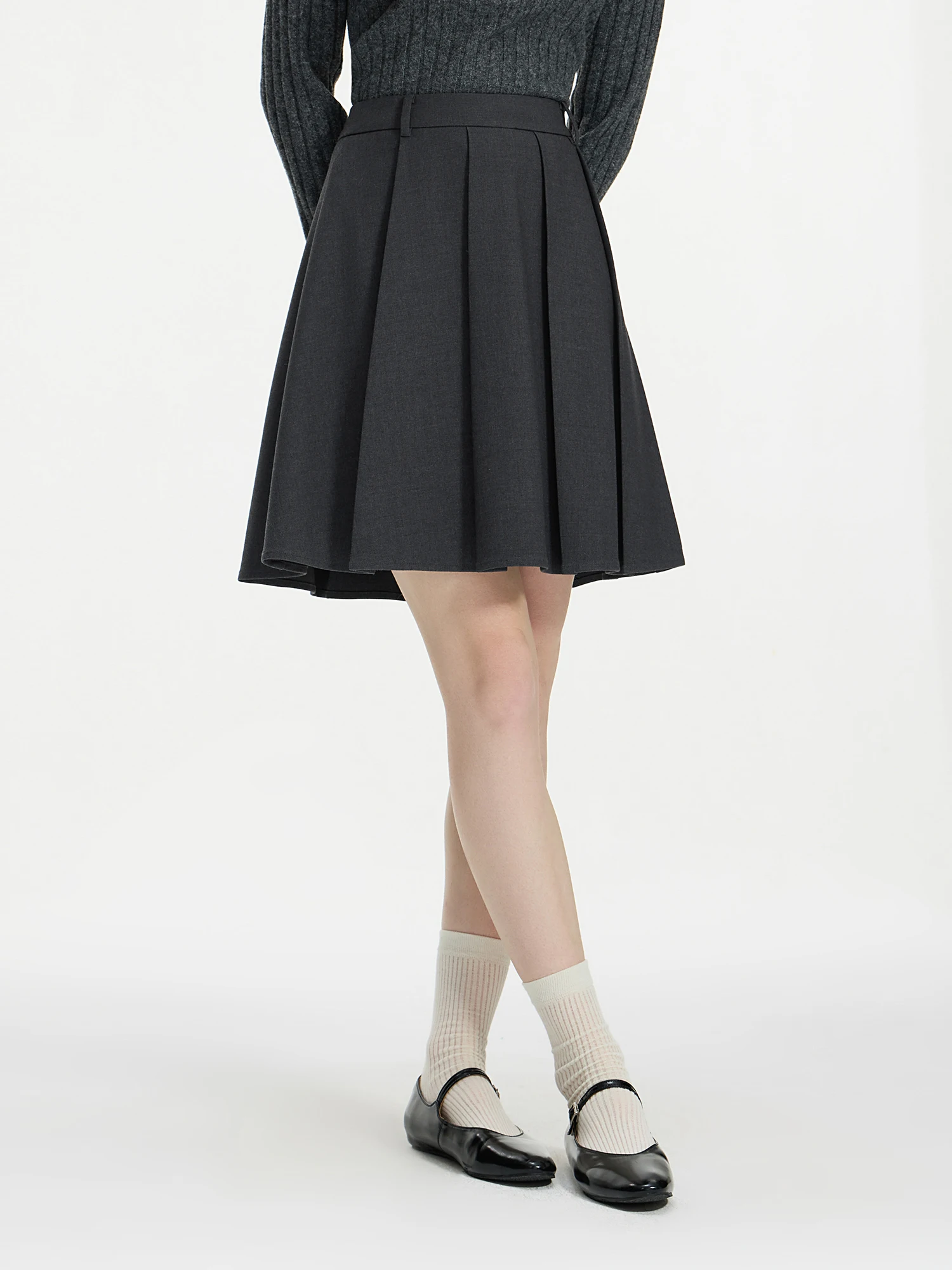This women’s wool blend pleated skirt is tailored for those who appreciate understated elegance and practical design. Featuring a high empire waist and an above-knee length, it presents a refined silhouette that complements a variety of body shapes. The pleated detail adds subtle movement and texture, enhancing its minimalist appeal suitable for winter wardrobes.