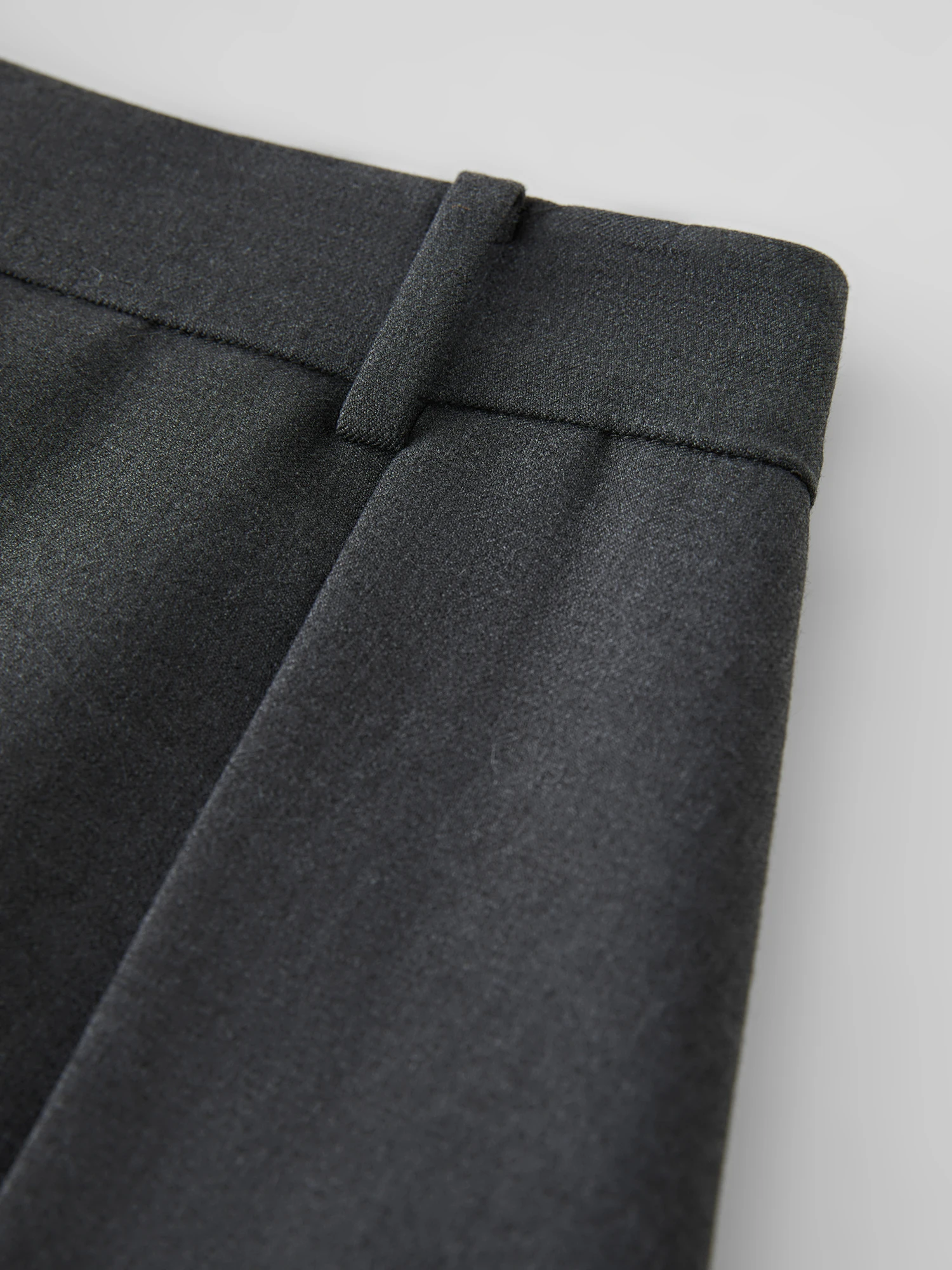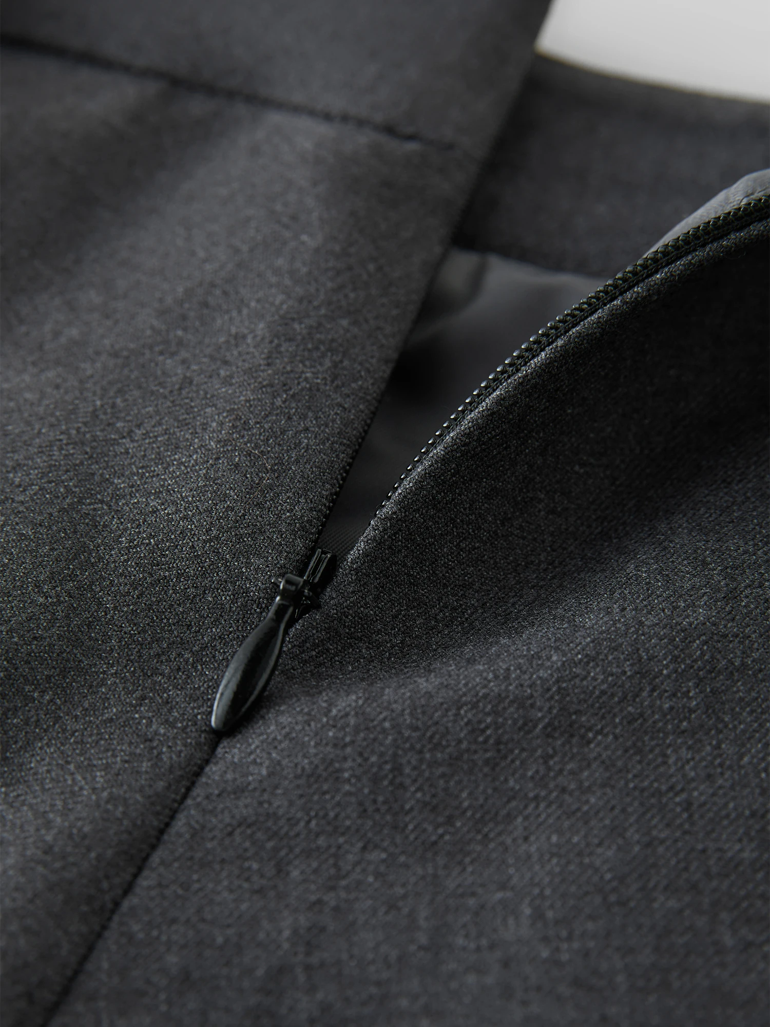 Designed for the discerning woman seeking refined office wear, this wool blend pleated skirt offers a subtle silhouette with its high empire waist and above-knee length. The slight stretch fabric ensures comfort throughout the day, making it suitable for both professional settings and elegant casual occasions.