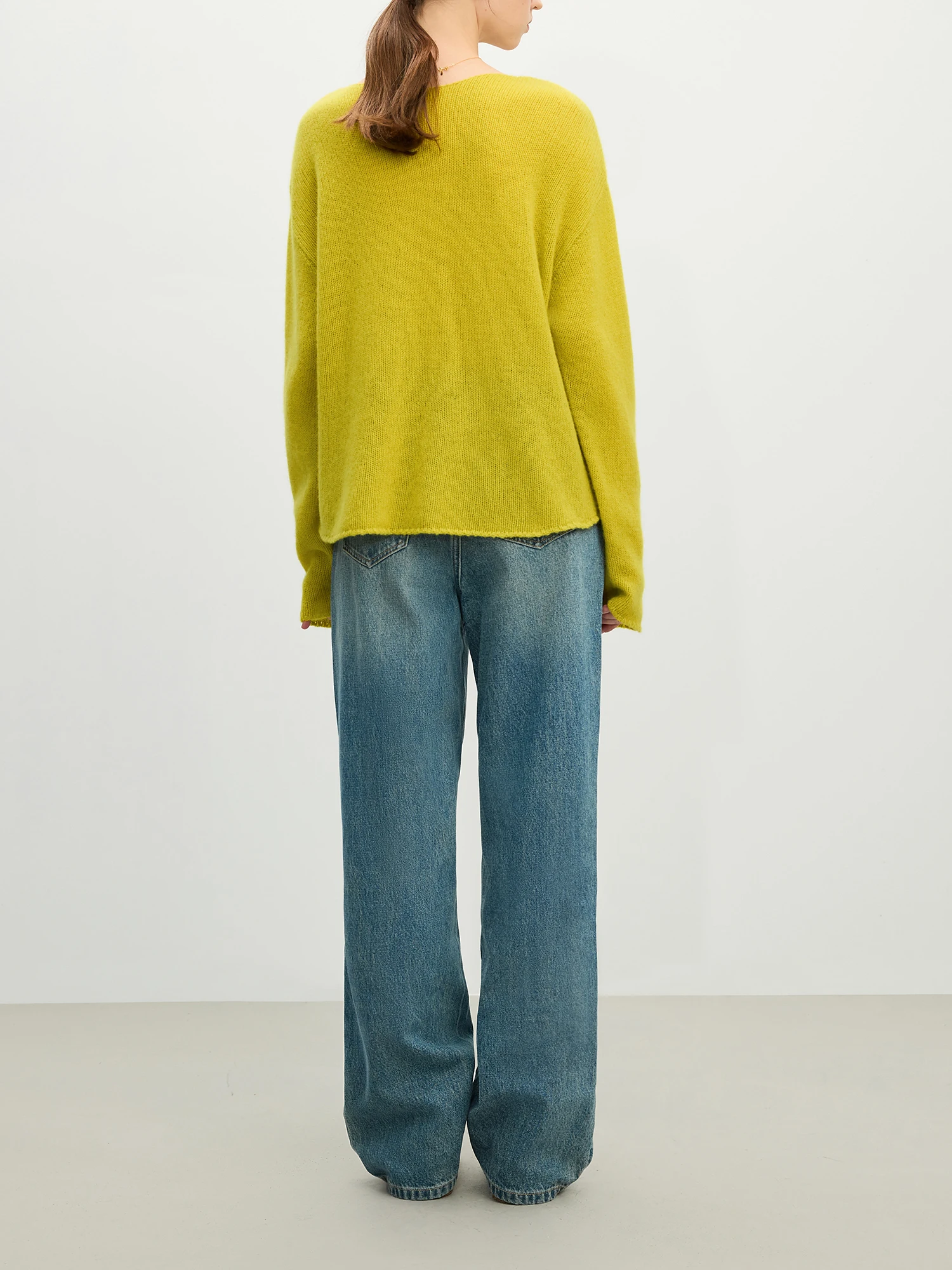 Discover the refined ease of the Women’s Wool Knit Pullover Sweater in a subtle yellow-green shade, designed to complement a modern minimalist wardrobe. Crafted from 100% wool, this pullover offers a lightweight warmth ideal for transitional spring and summer days. Its loose-fitting silhouette and classic crew neckline provide a comfortable yet polished foundation for a variety of outfits.