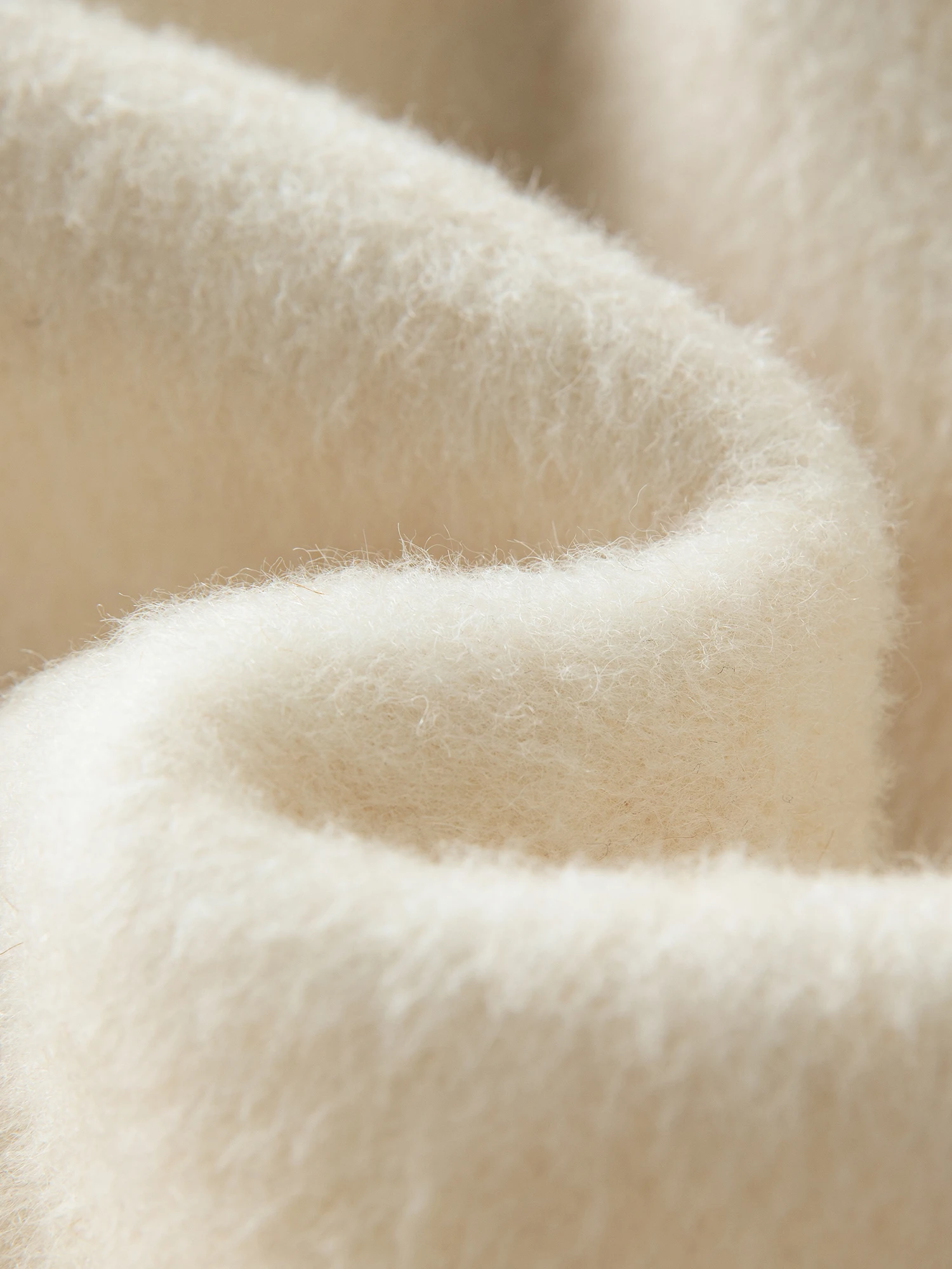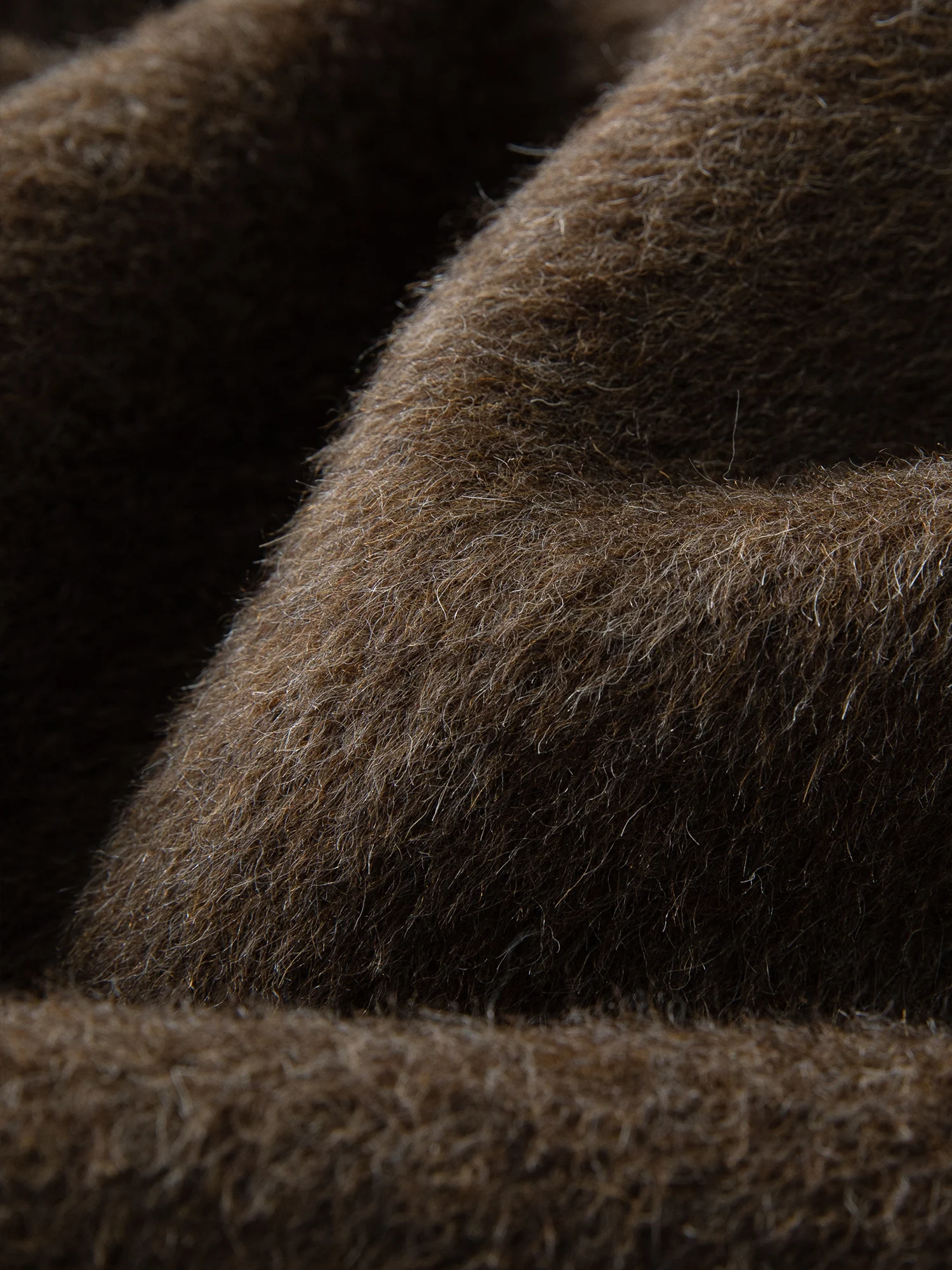 Q: What is the fabric composition and how does it feel?A: Made from a blend of 92.1% sheep wool and 7.9% yak wool, the fabric offers natural insulation with a soft, textured finish, suitable for cooler weather.