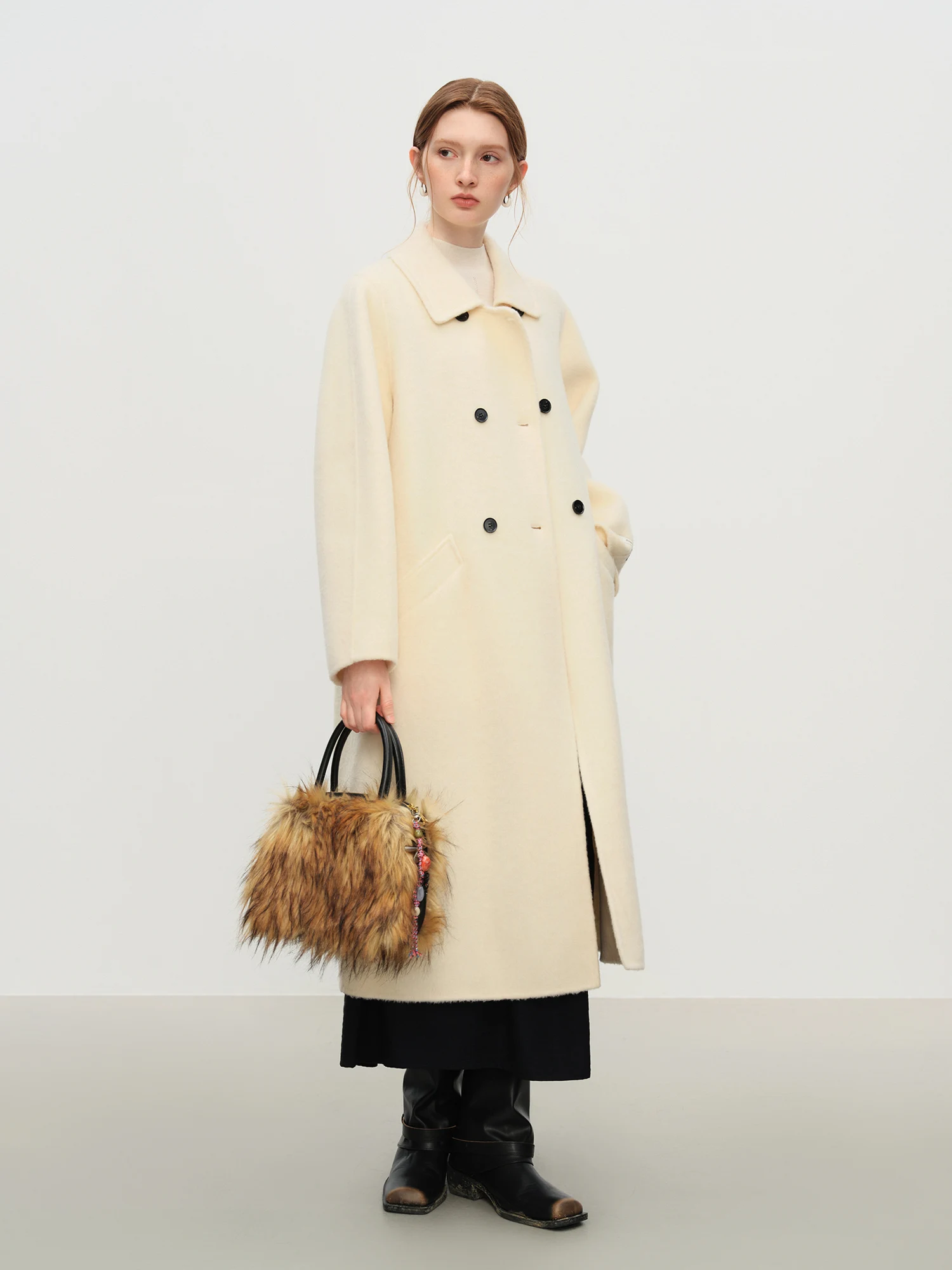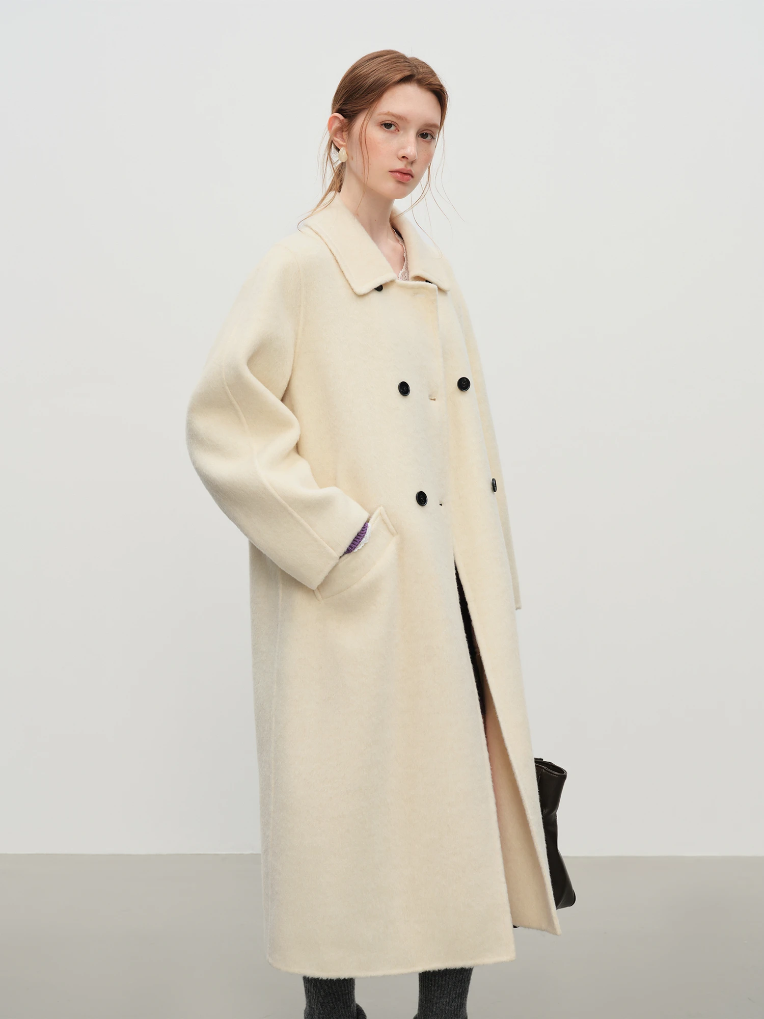 Women’s Yak Wool Blend Double Breasted Coat with Peter Pan Collar