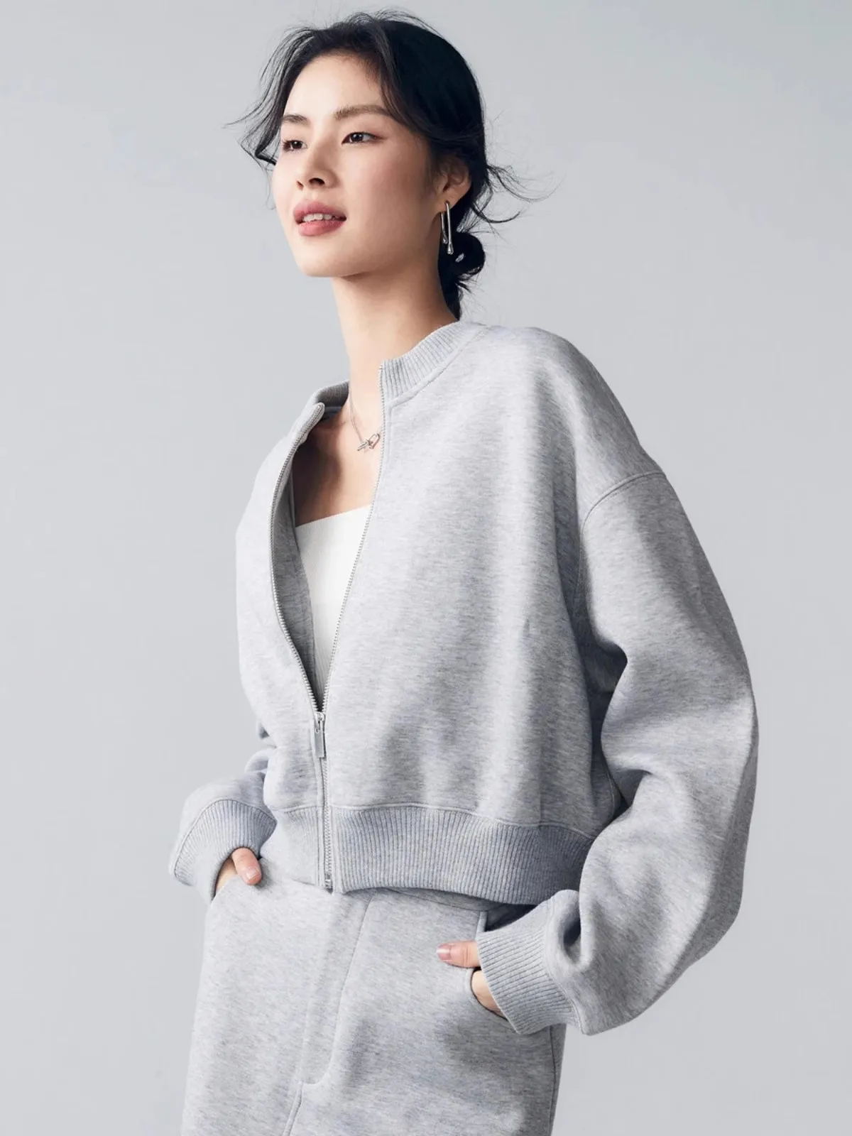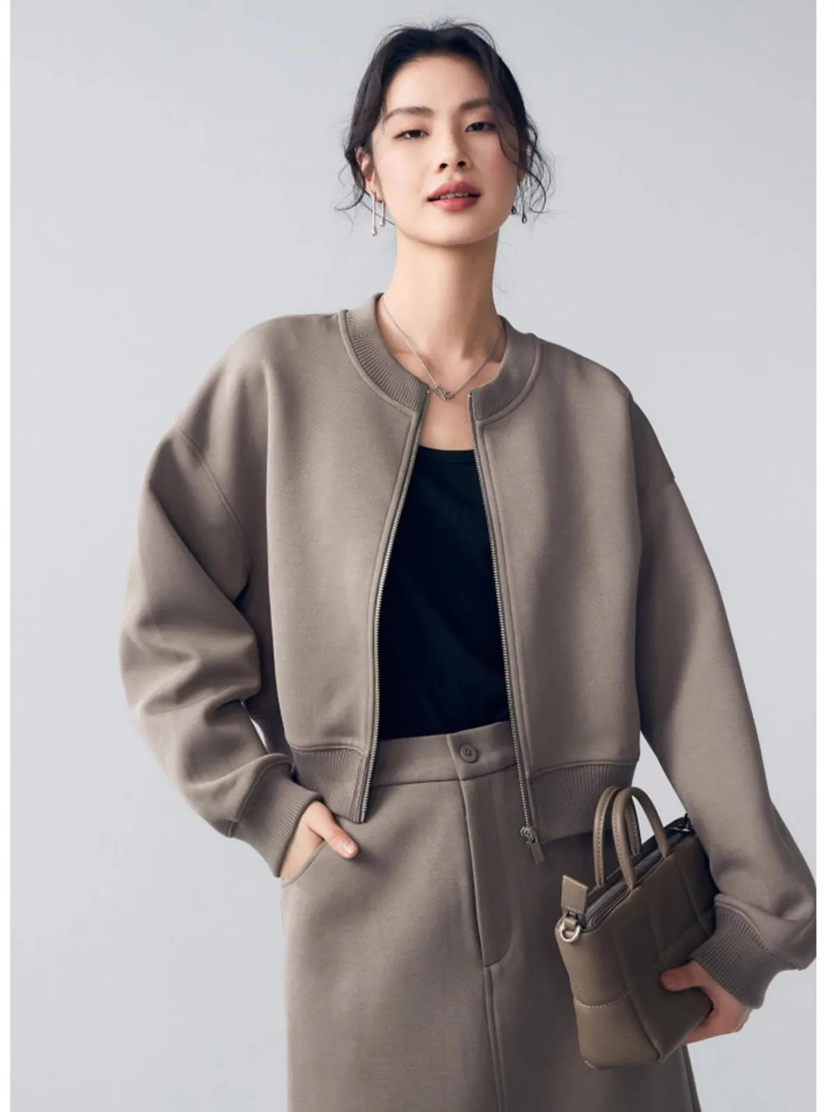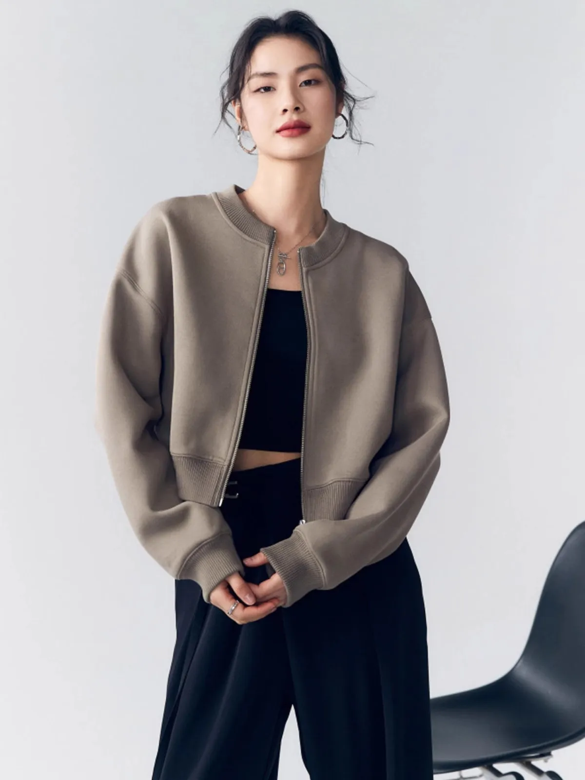 This women’s zip-up baseball jacket offers a relaxed streetwear fit, designed for everyday comfort and casual style. Crafted from a polyester blend with slight stretch, it provides ease of movement and a loose silhouette suited for autumn and winter wear.