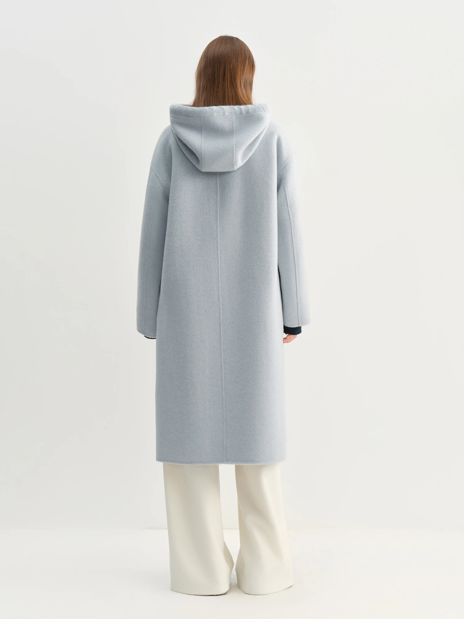 Designed for women seeking refined warmth, this Wool Blend Hooded Coat combines classic tailoring with a relaxed, wide-waisted silhouette. Crafted from 100% wool, it offers natural insulation and a soft texture ideal for cooler seasons.