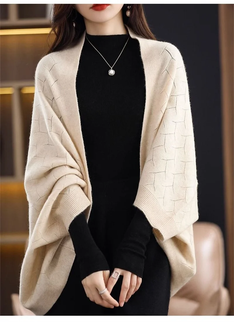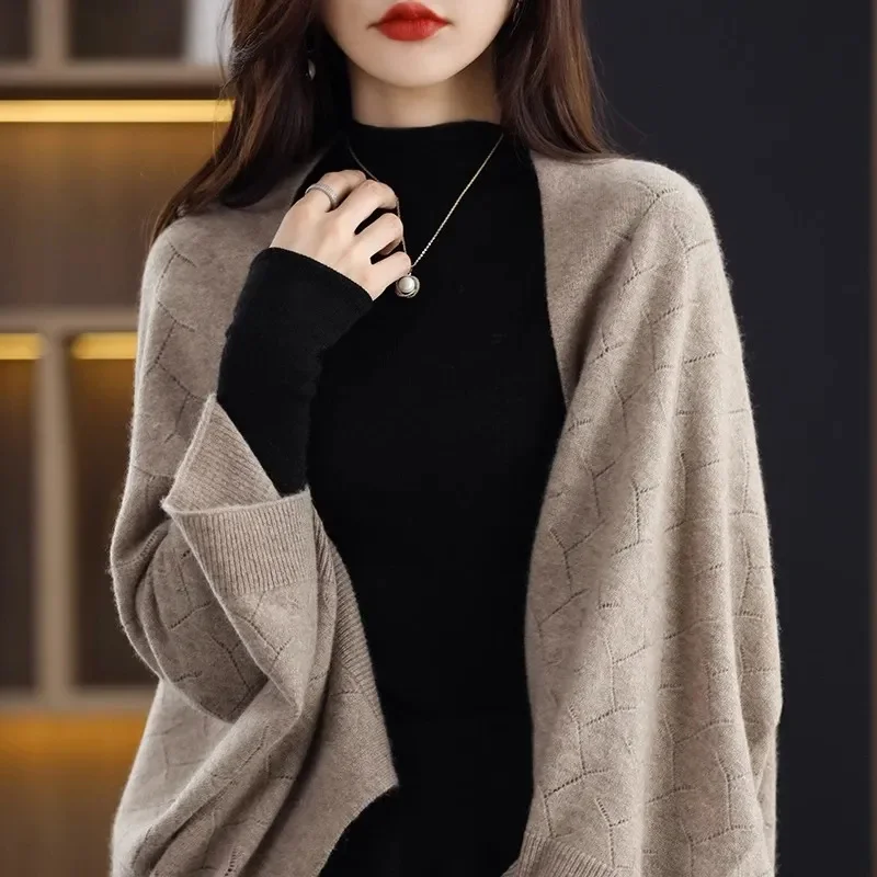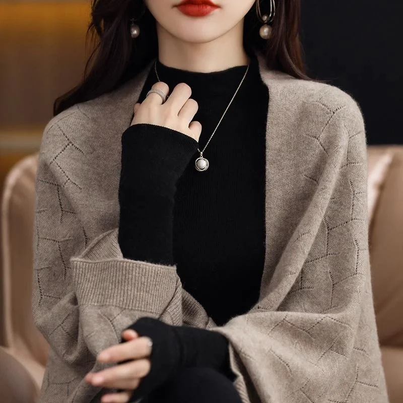 Its pullover design and standard thickness make it comfortable for cooler days, while the hollow-out detailing adds subtle texture. Available in a range of muted tones including black, beige, and khaki, it pairs well with neutral outerwear or layered over tailored pieces.
