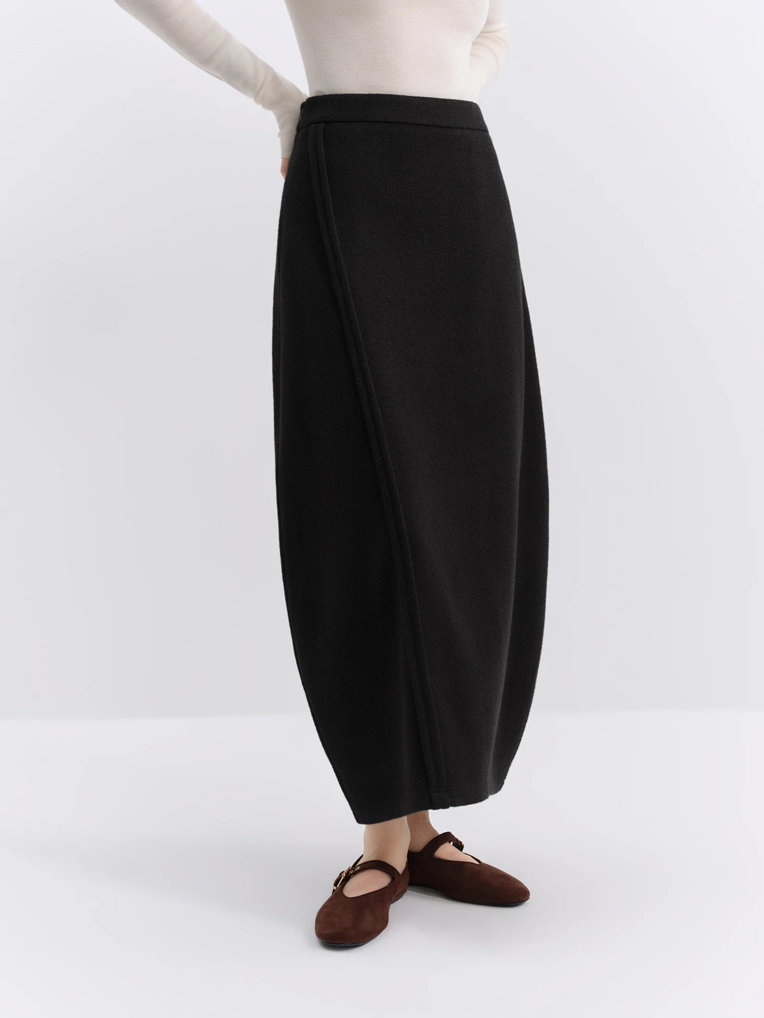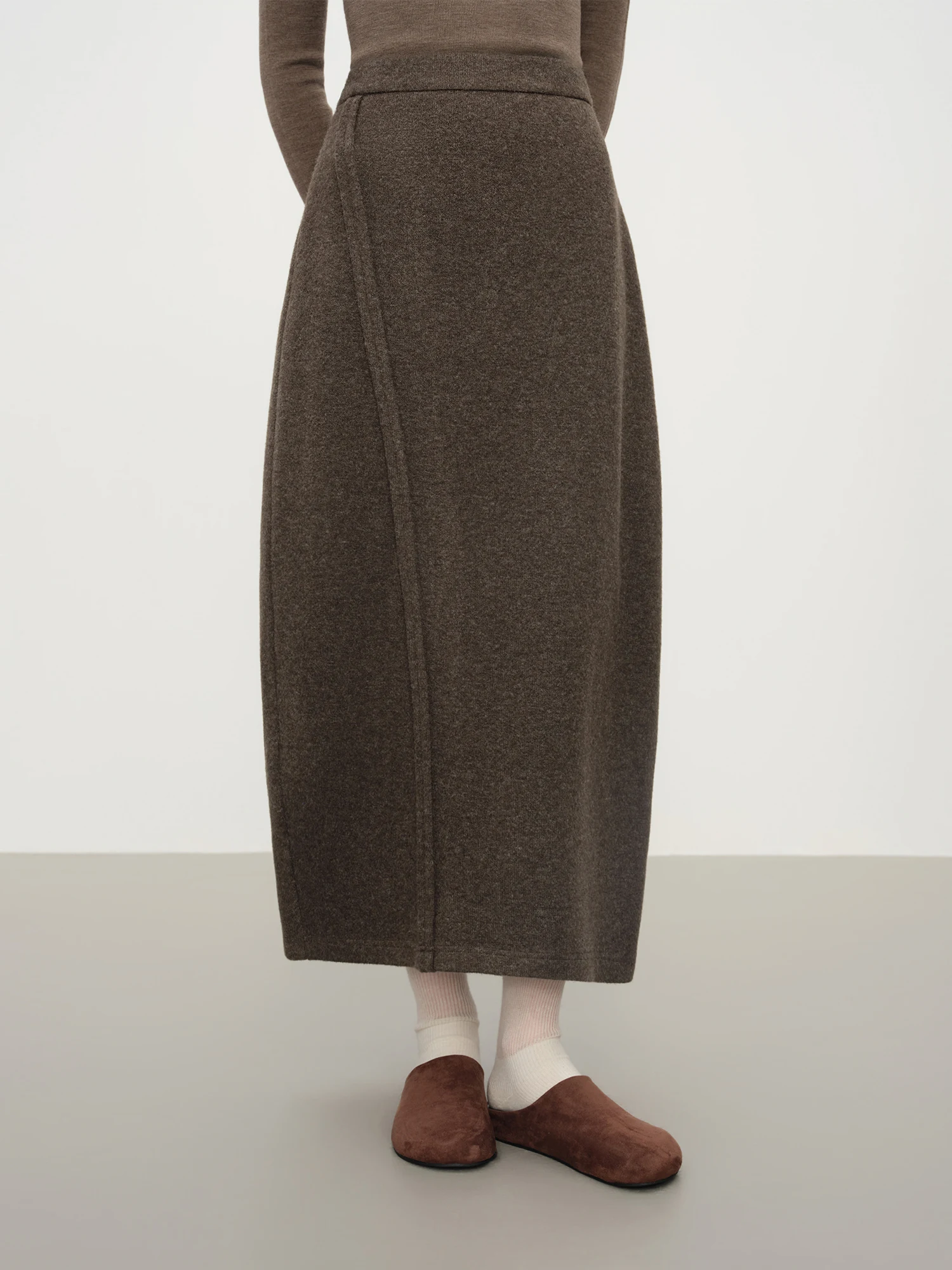 Ideal for autumn and winter office settings, pair this ankle-length skirt with a tailored blouse and leather ankle boots for a polished ensemble.