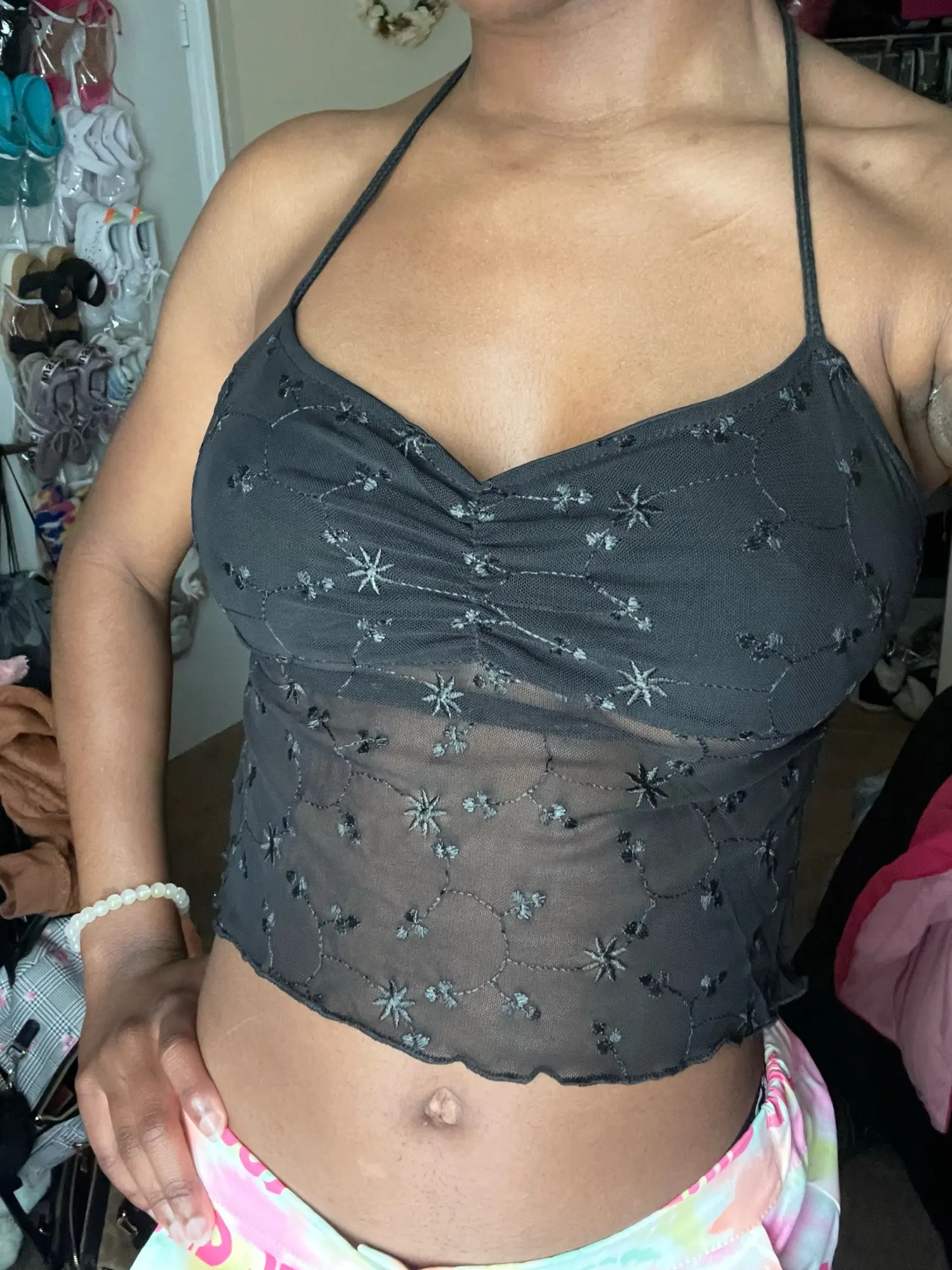 12 reviews for Y2K Black Lace Halter Crop Top with Slim Fit