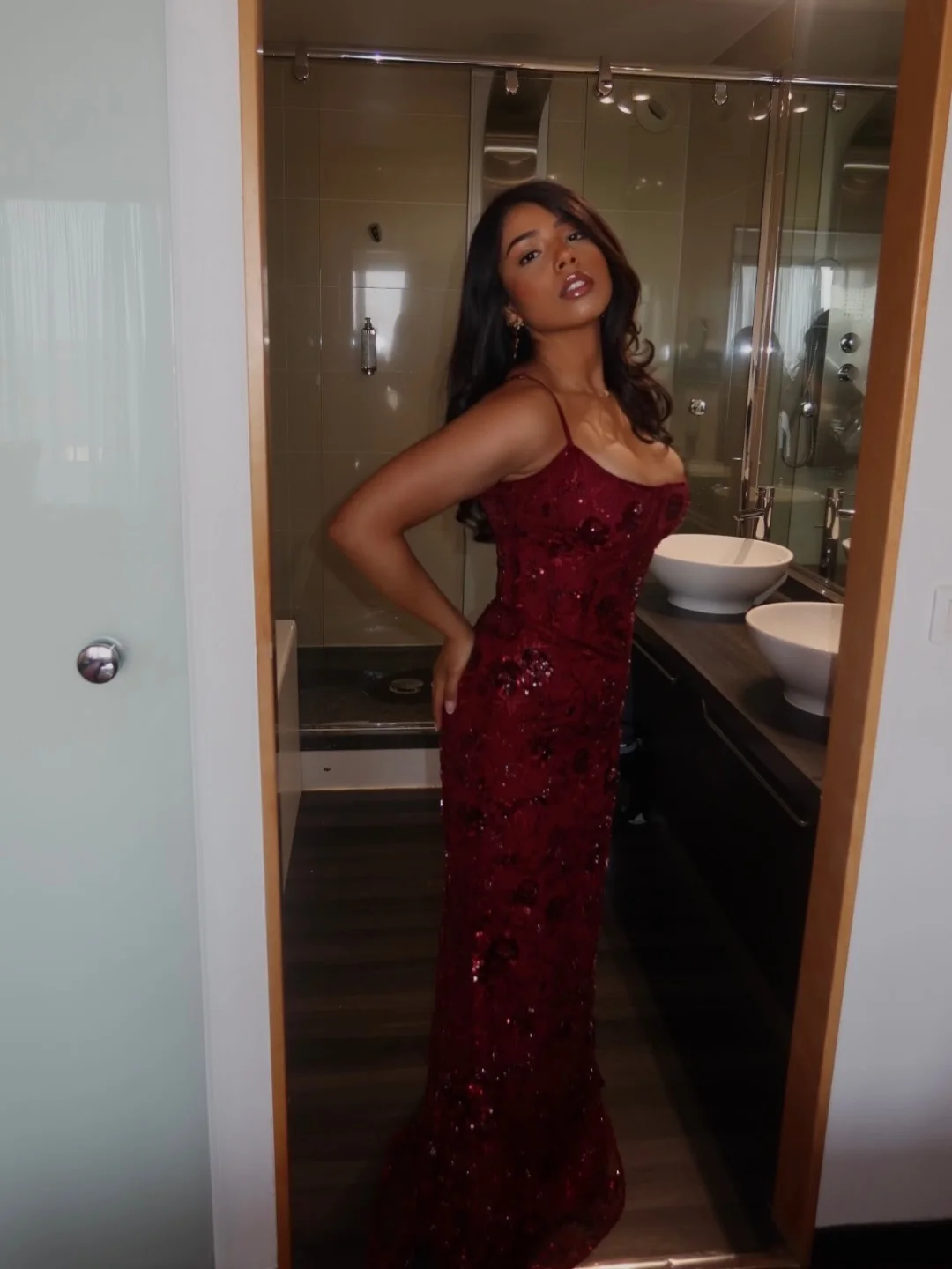 I am wearing size xs, i am 5’7 and my bust is 83cm, waist is 68cm and hips are 101cm